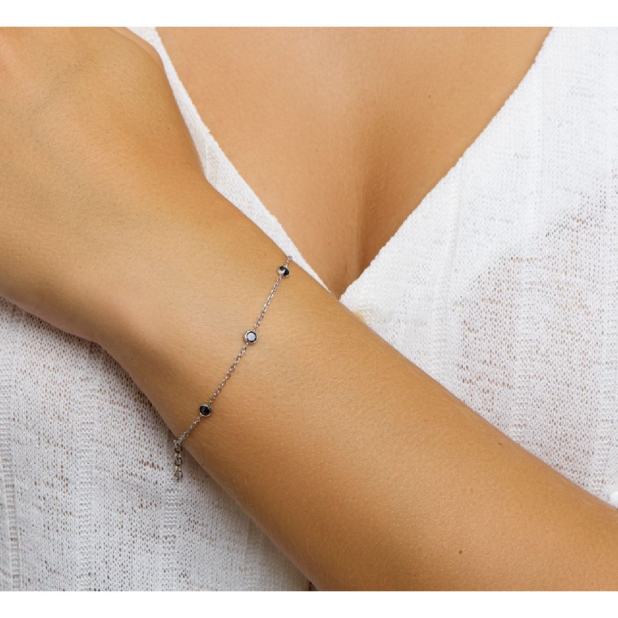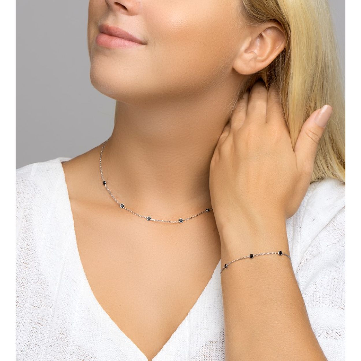 De armband is gemaakt van gerhodineerd zilver en is zwartkleurig. Het is een sieraad voor dames.