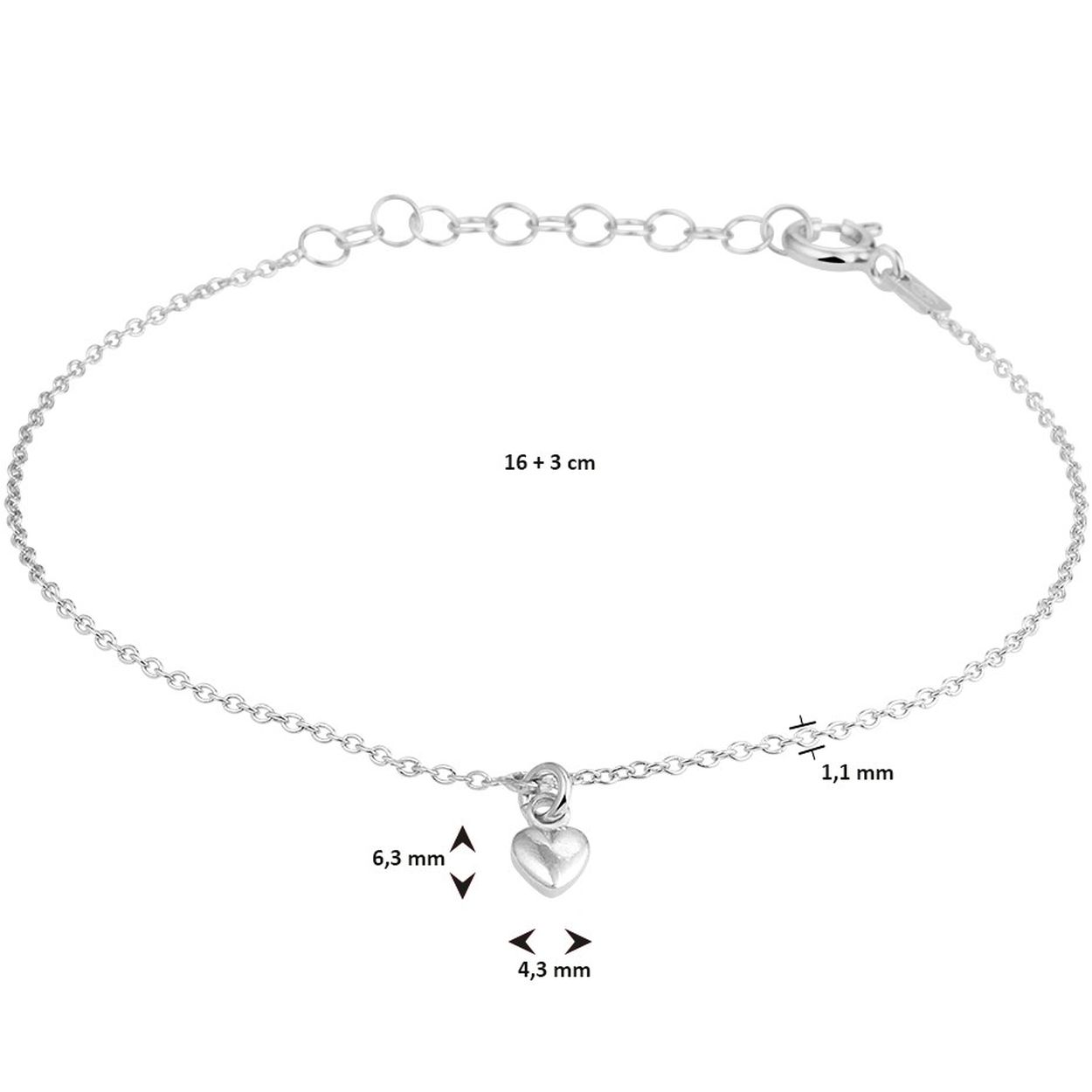 Gerhodineerd 925 zilveren armband uitgevoerd met een hangertje in de vorm van een hartje. De armband heeft een draaglengte van 16cm met een extensie van 3cm. Het hartje heeft een afmeting van 6.3x4.3mm.
