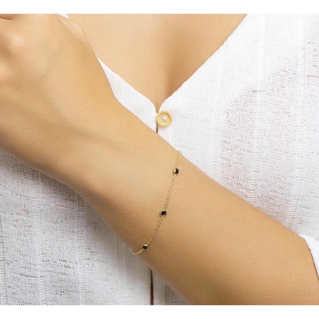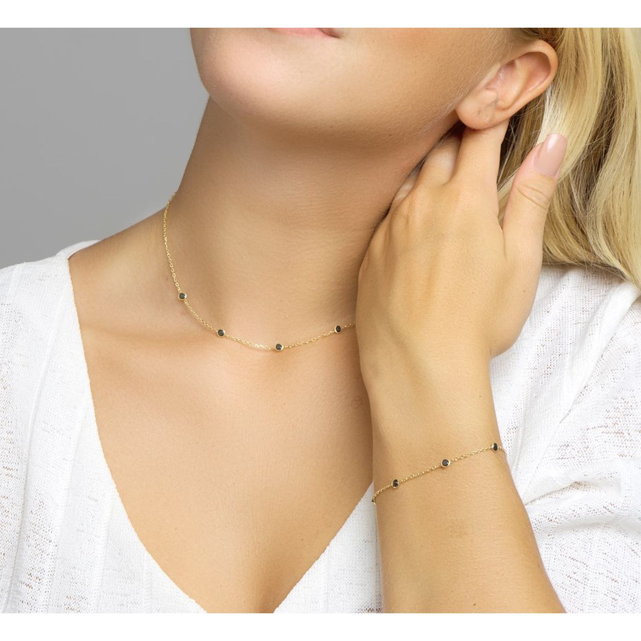 Geelgoud op 925 zilveren 1.5mm anker armband uitgevoerd met schitterende onyx en een karabijn sluiting. De armband heeft een draaglengte van 17cm en een extensie van 2cm.