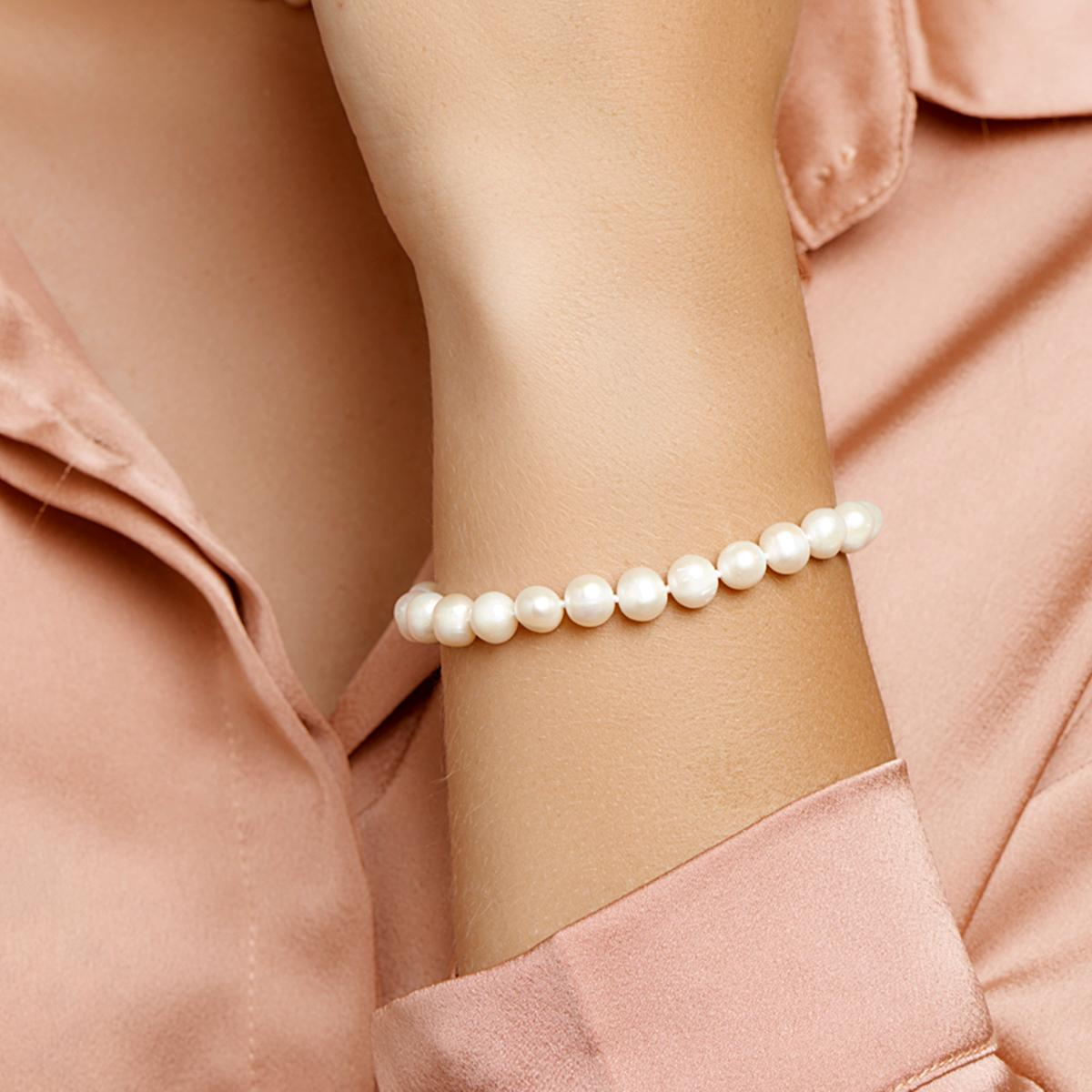 Armband met zoetwaterparels van 7,5 mm, modelnummer 1318137, biedt een elegante uitstraling. Gemaakt met witte zoetwaterparels, past het armbandje perfect bij elke formele gelegenheid. Draag het solo voor een subtiele look of combineer met andere sieraden voor een gelaagd effect. Met een lengte van 18+3 cm is het veelzijdig verstelbaar.