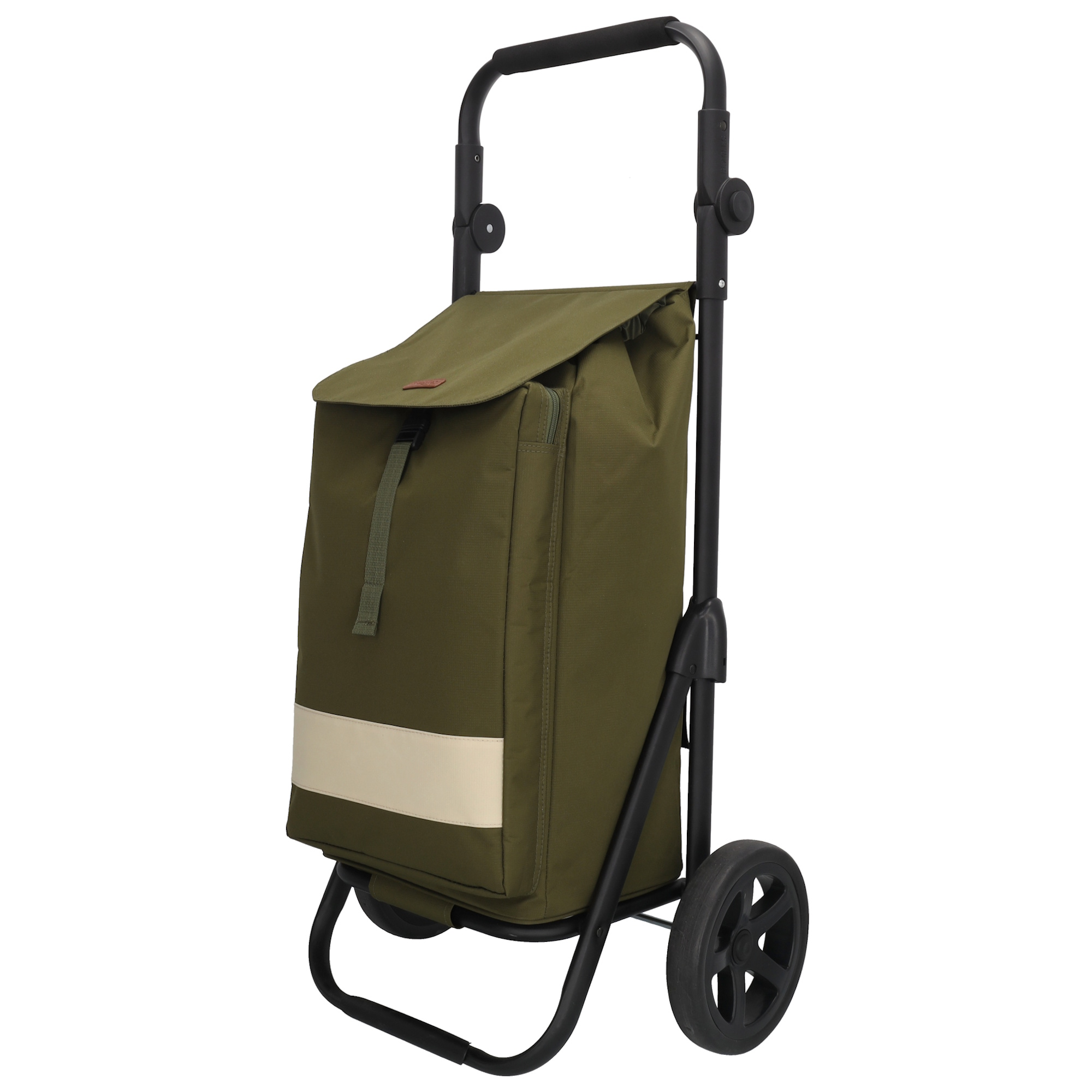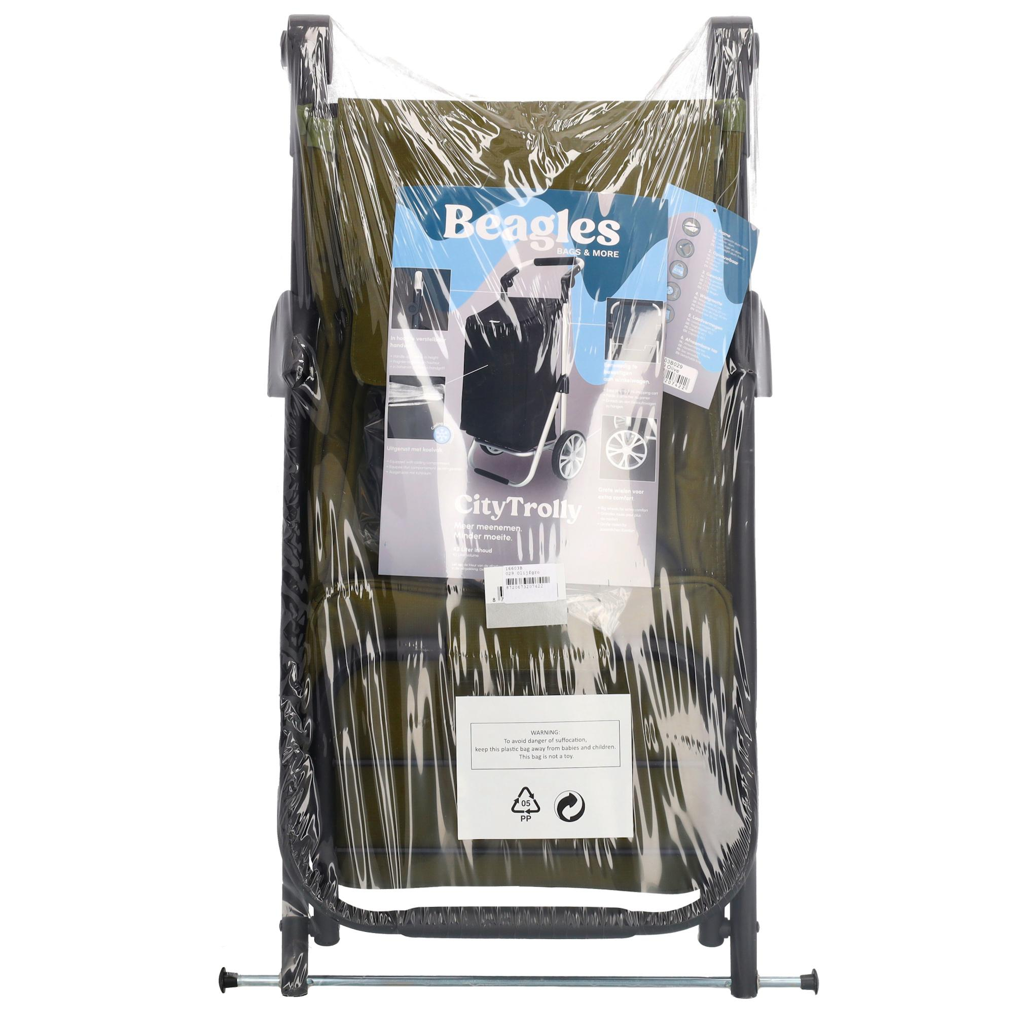 Deze boodschappentrolley komt altijd wel van pas. Hij komt uit de Alberic collectie van Beagles. Voor een snelle of een grote boodschap; hij kan het allemaal. Het opbergvak is heel ruim en met de trolley heb je je handen vrij en hoef je geen zware tassen te tillen. Het handvat is verstelbaar. Daarnaast zit er een standaard op de trolley. Ideaal dus!
