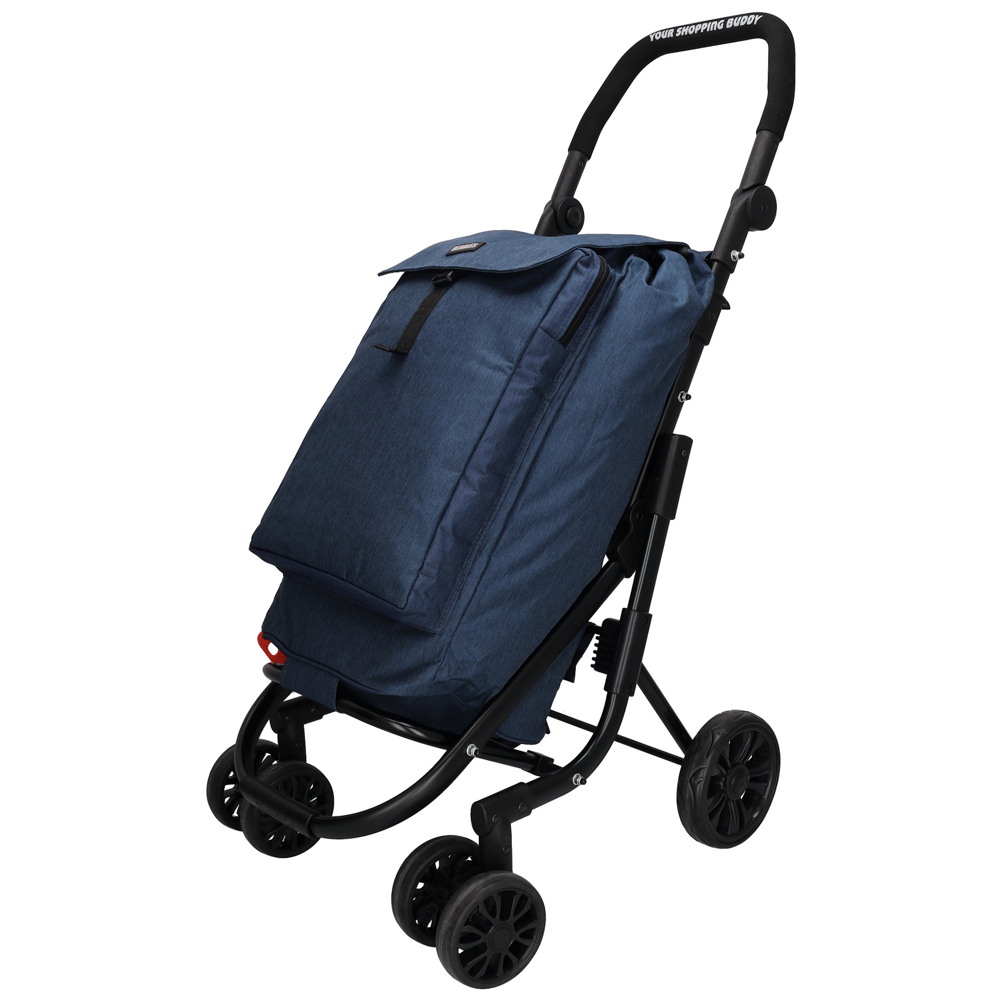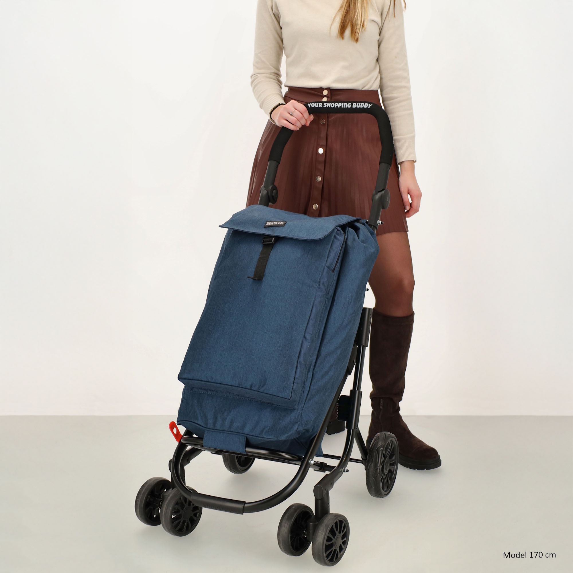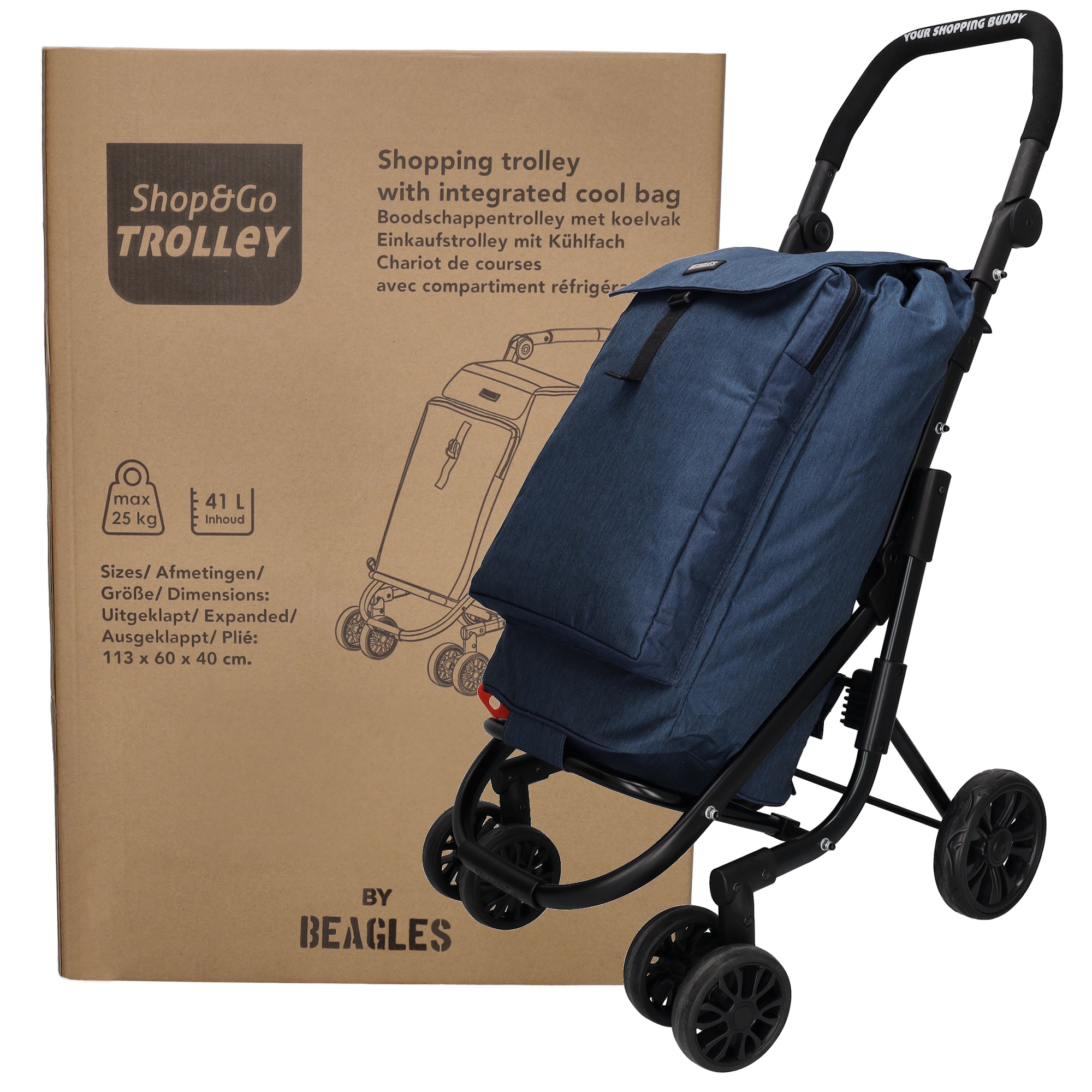 Met de Beagles Shop & Go Boodschappentrolley wordt boodschappen doen eenvoudiger en comfortabeler! Deze handige duwkar is voorzien van vier wielen, waarbij de voorste wielen zwenkwielen zijn voor extra wendbaarheid. Dankzij het verstelbare handvat stel je de hoogte gemakkelijk af op jouw voorkeur, zodat je de trolley moeiteloos voortduwt.