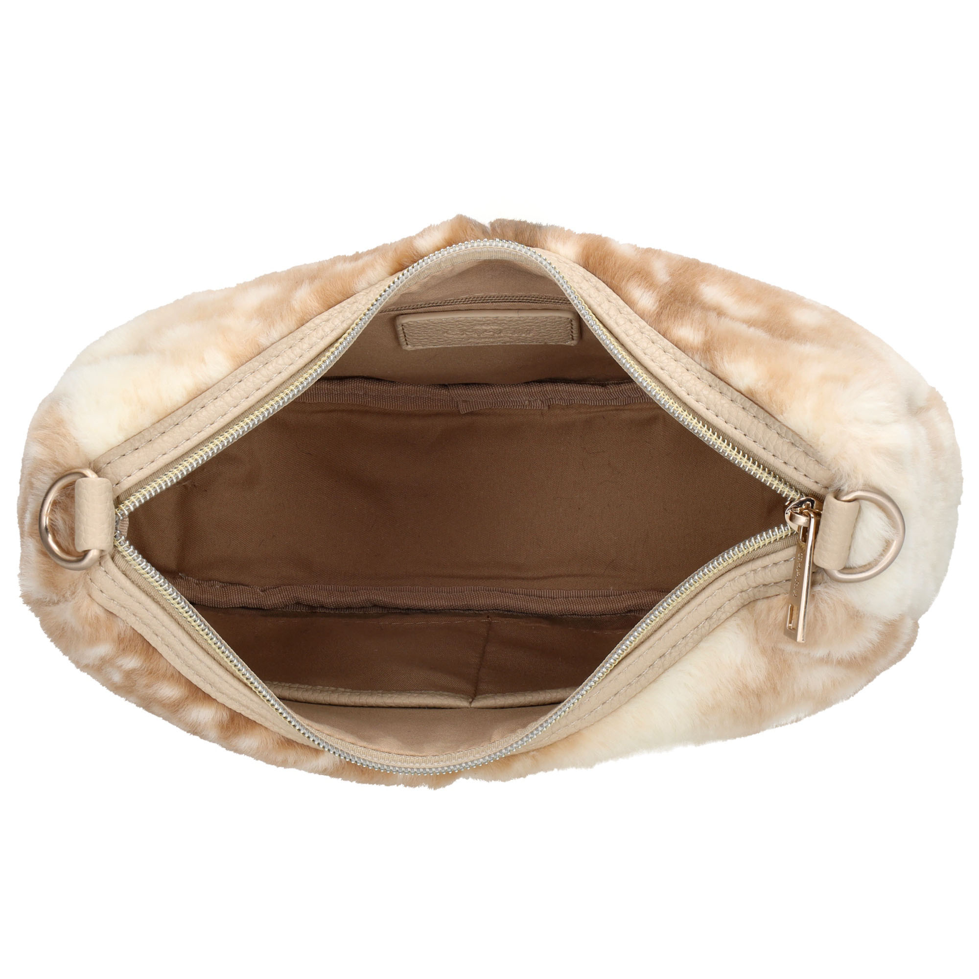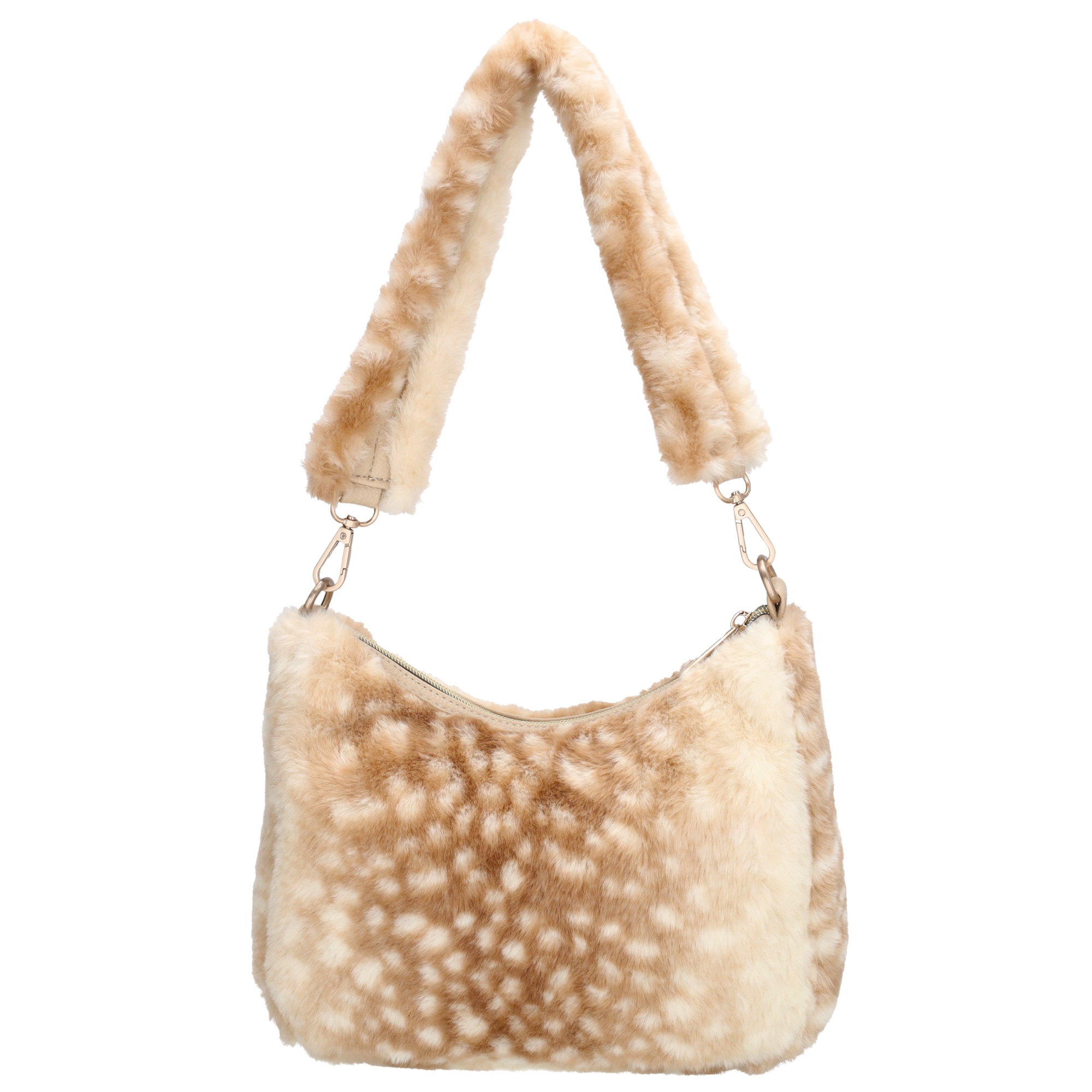 De Charm London Alaska crossbodytas is een trendy tas van zacht bontmateriaal, perfect voor een stijlvolle en warme look. De tas sluit met een rits en heeft aan de binnenkant twee insteekvakken en een ritsvak om je essentials overzichtelijk op te bergen. De tas wordt geleverd met twee afneembare schouderbanden: een korte band van bont voor een chique uitstraling en een lange, verstelbare band van kunstleer voor comfortabel crossbody gebruik.