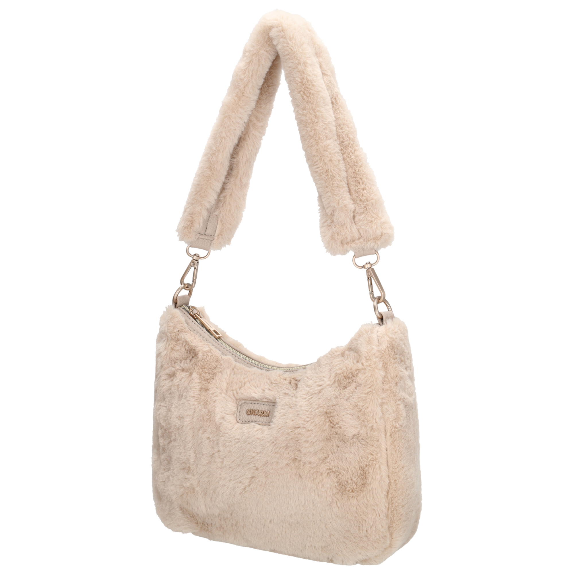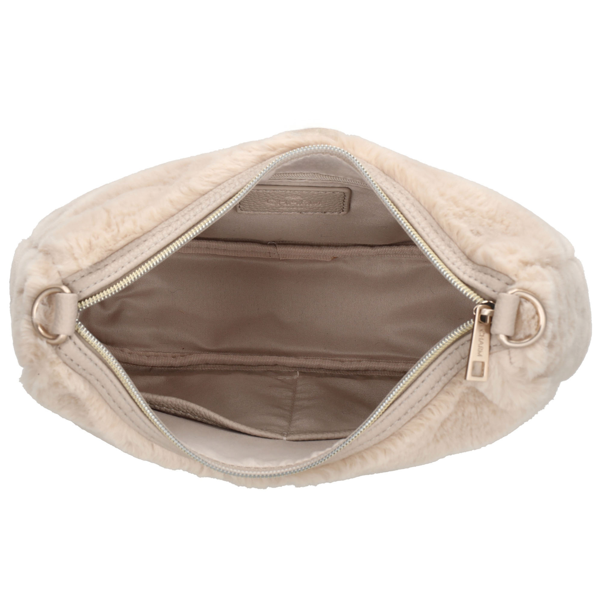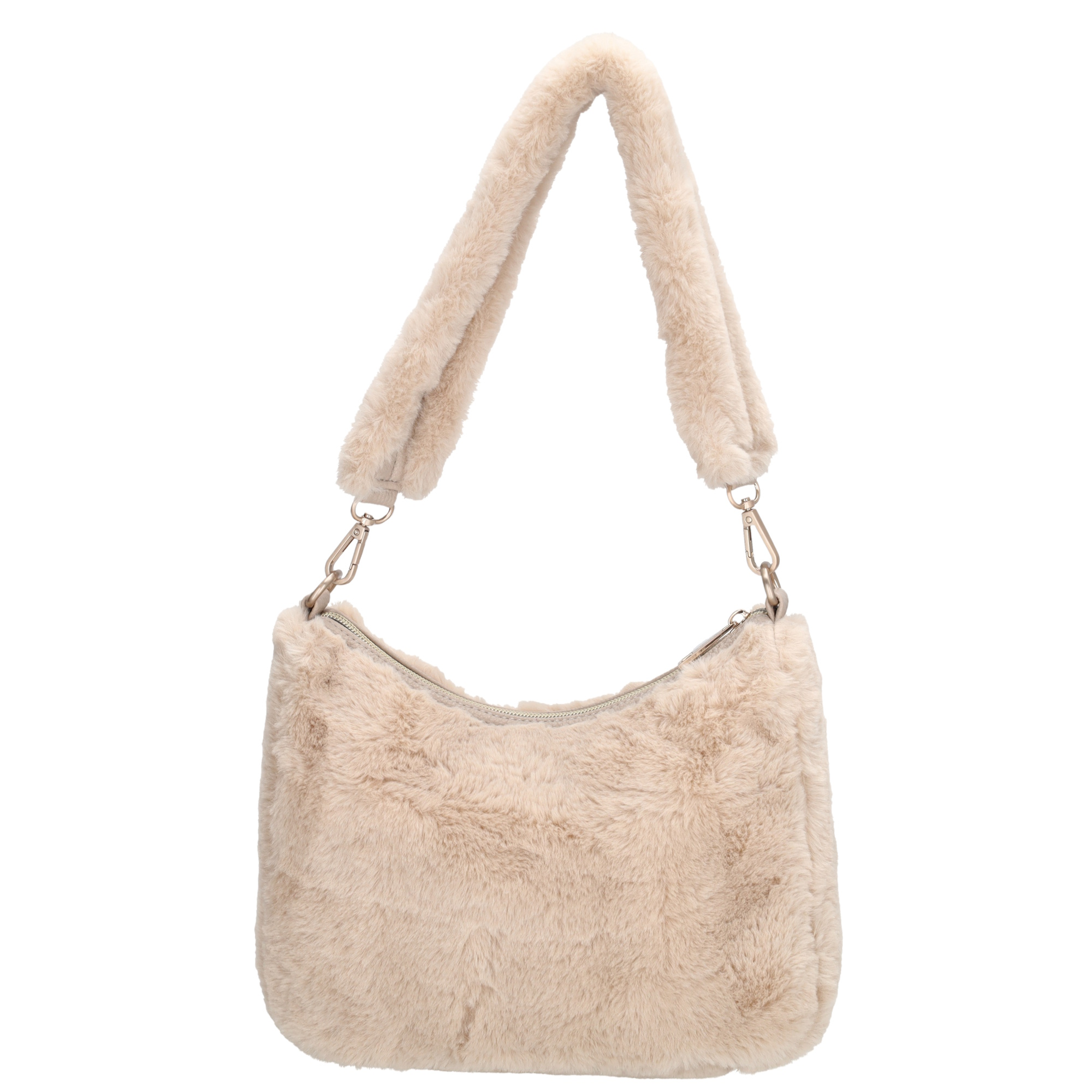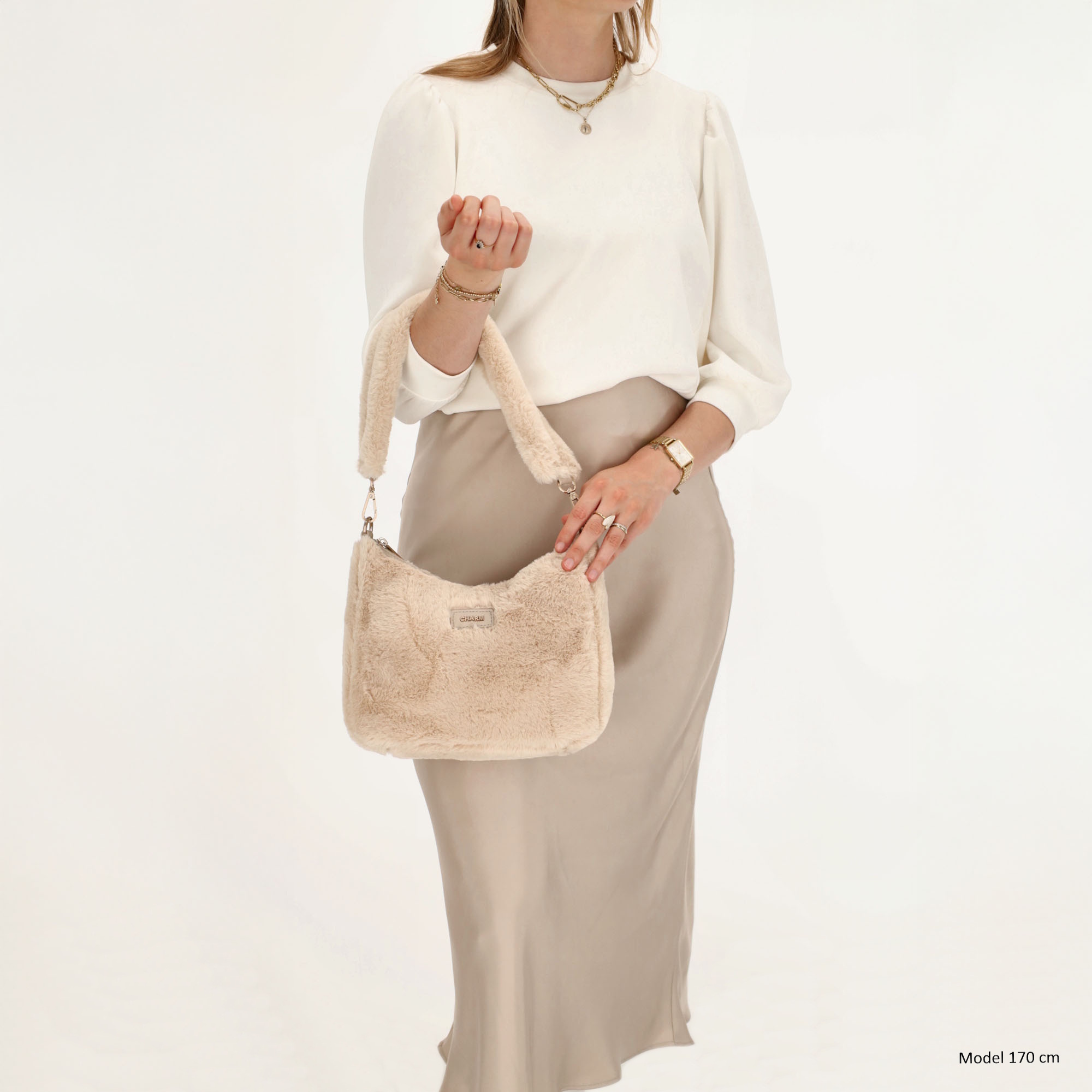 De Charm London Alaska crossbodytas is een trendy tas van zacht bontmateriaal, perfect voor een stijlvolle en warme look. De tas sluit met een rits en heeft aan de binnenkant twee insteekvakken en een ritsvak om je essentials overzichtelijk op te bergen. De tas wordt geleverd met twee afneembare schouderbanden: een korte band van bont voor een chique uitstraling en een lange, verstelbare band van kunstleer voor comfortabel crossbody gebruik.