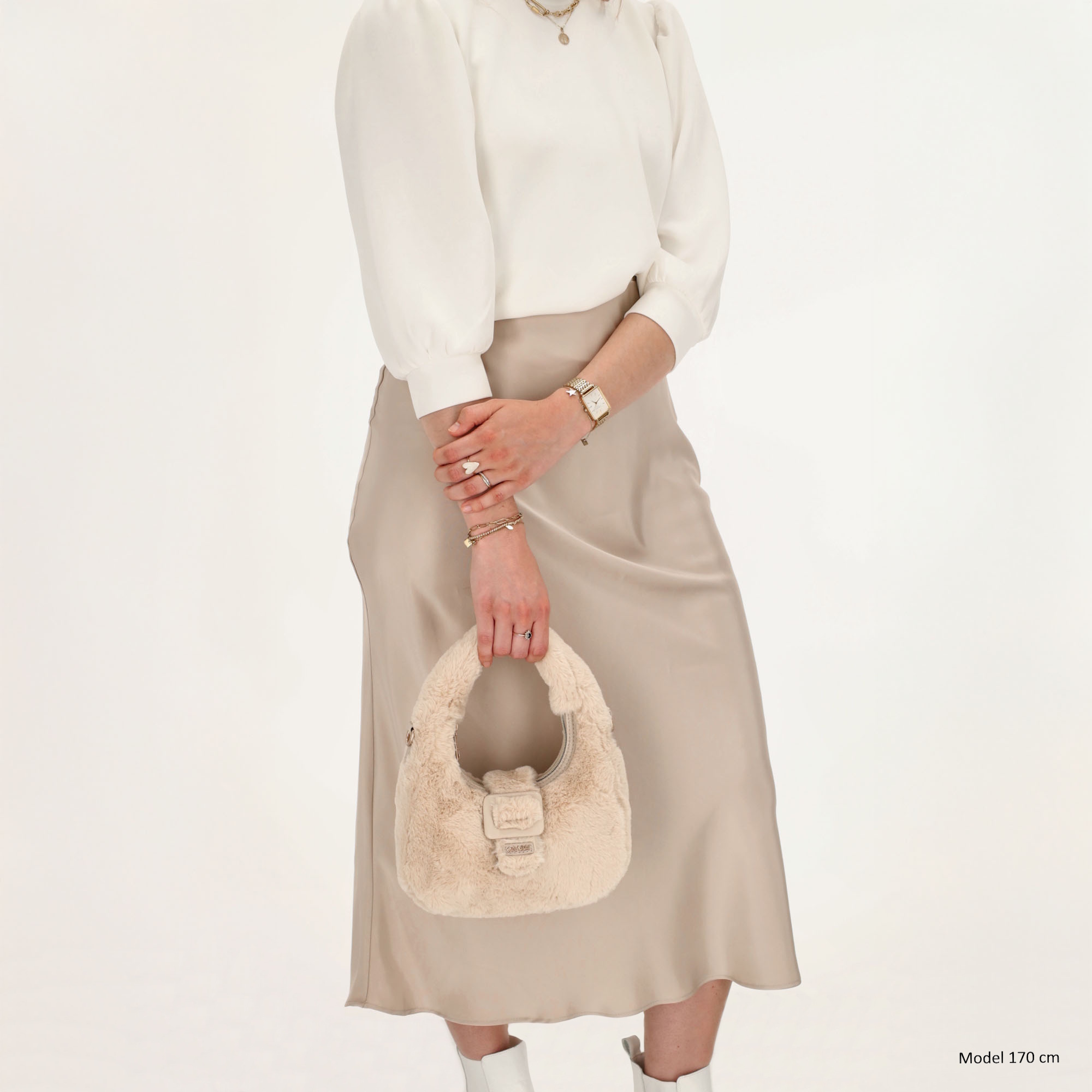 De Charm London Alaska handtas is een compacte en stijlvolle tas van zacht bontmateriaal. De tas sluit met een ritssluiting en heeft een overslag met gespdetail, die vastzit met een handige magneetsluiting. Binnenin zit een ritsvak voor kleine essentials. De tas wordt geleverd met een verstelbare en afneembare schouderband, zodat je haar ook crossbody kunt dragen.