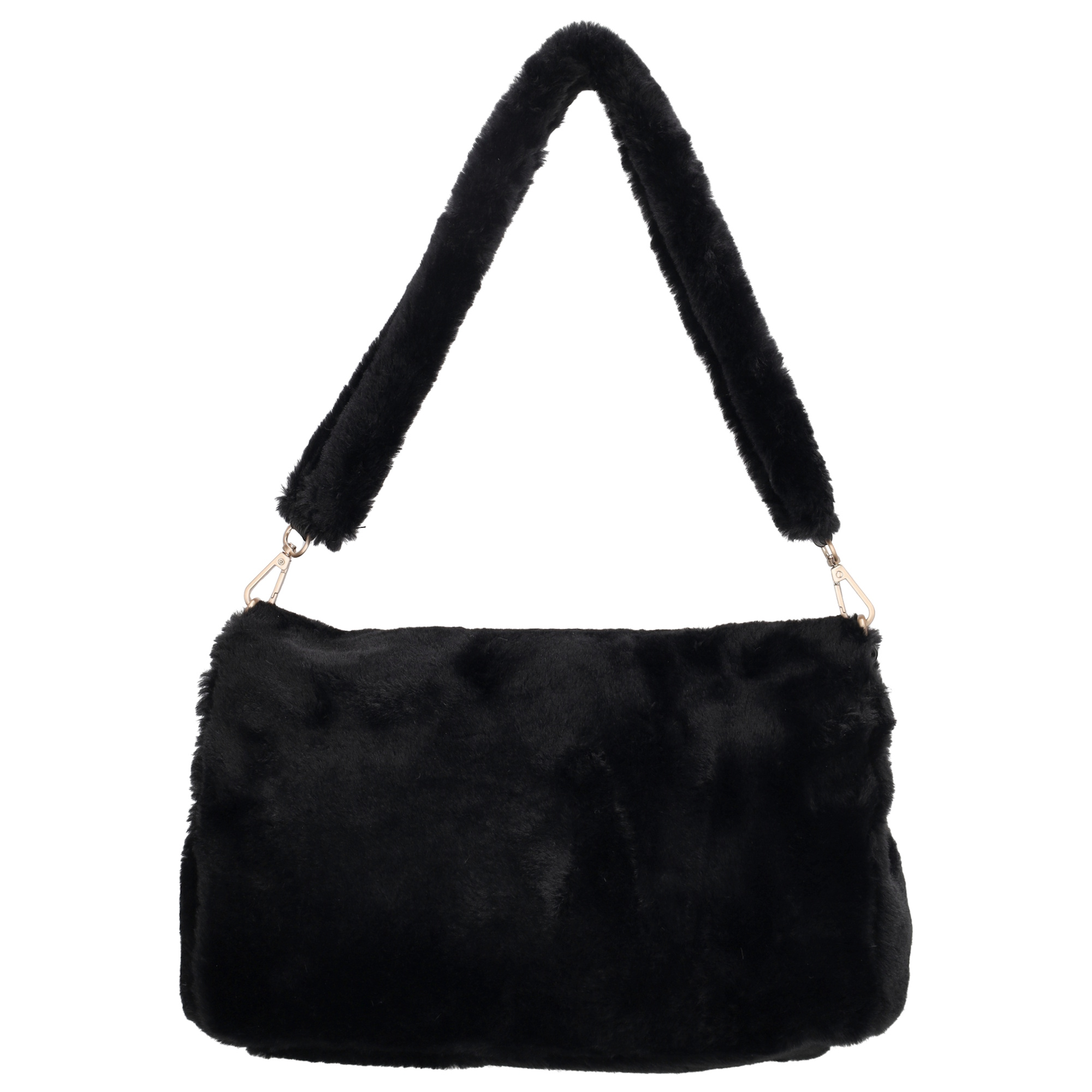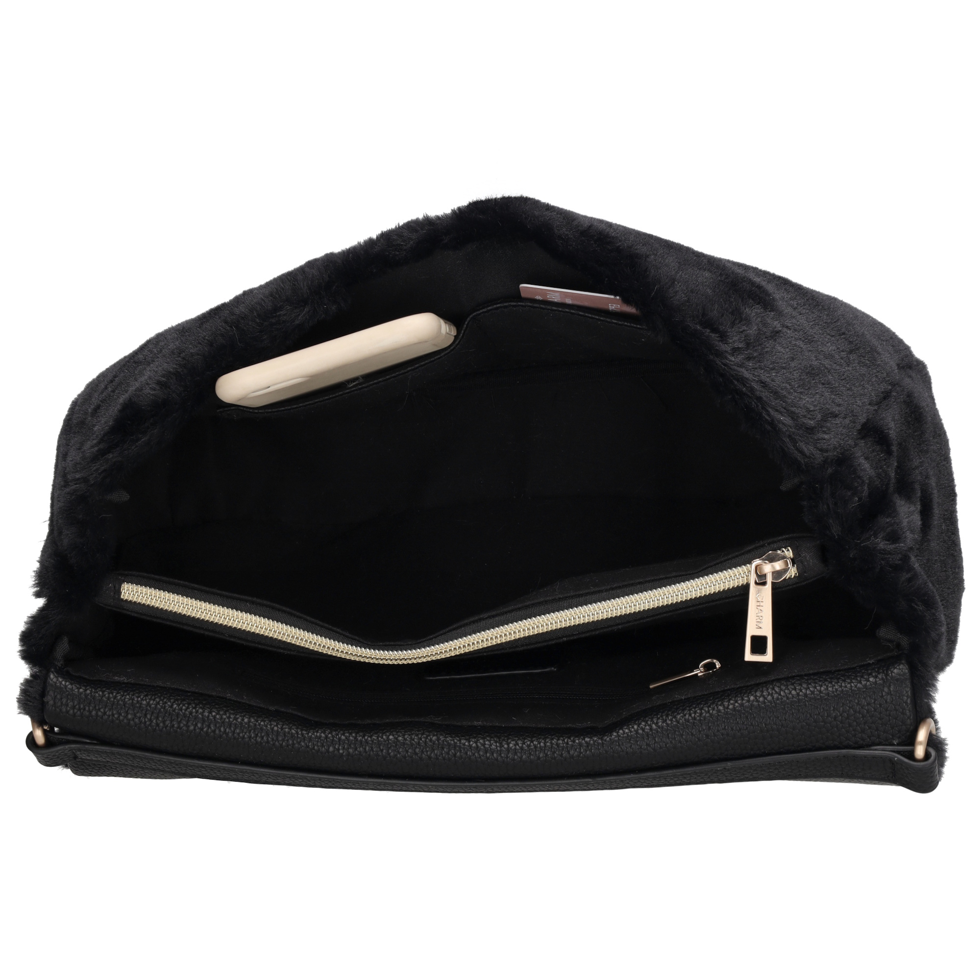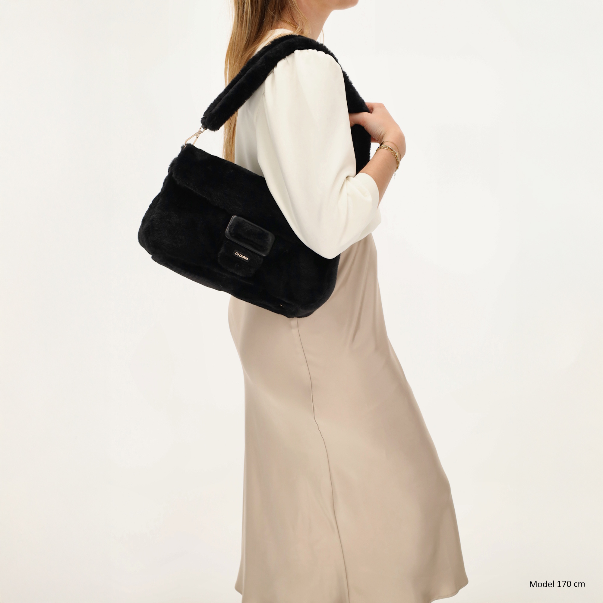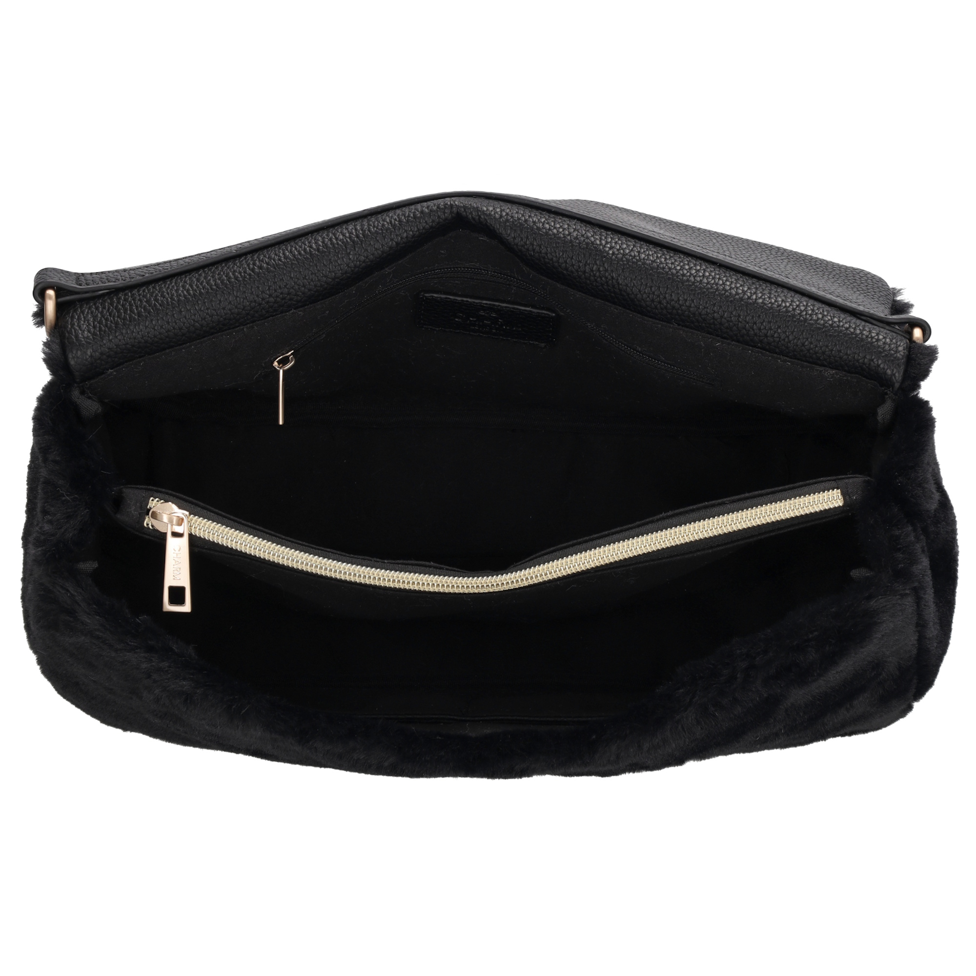 De Charm London Alaska schoudertas is een trendy tas van zacht bontmateriaal met een stijlvolle overslag. Binnenin is de tas voorzien van een praktisch tussenvak, twee insteekvakken en een klein ritsvakje – perfect om je essentials overzichtelijk op te bergen. De tas komt met twee schouderbanden: een korte bontband voor een elegante look en een lange, verstelbare schouderband van kunstleer voor extra draagcomfort en veelzijdigheid.