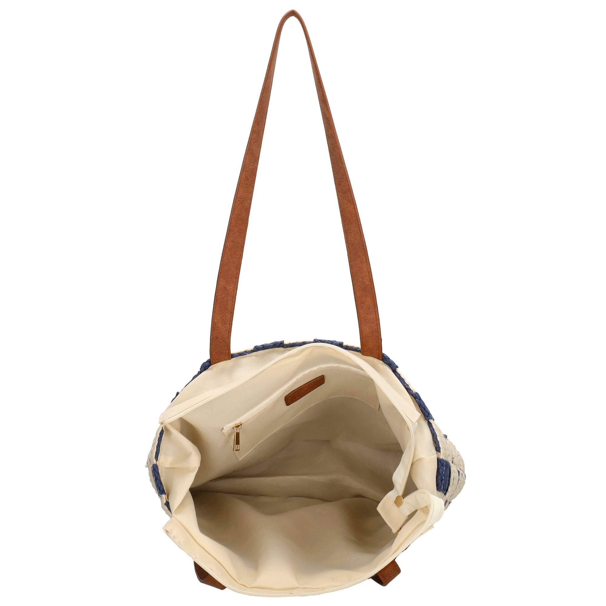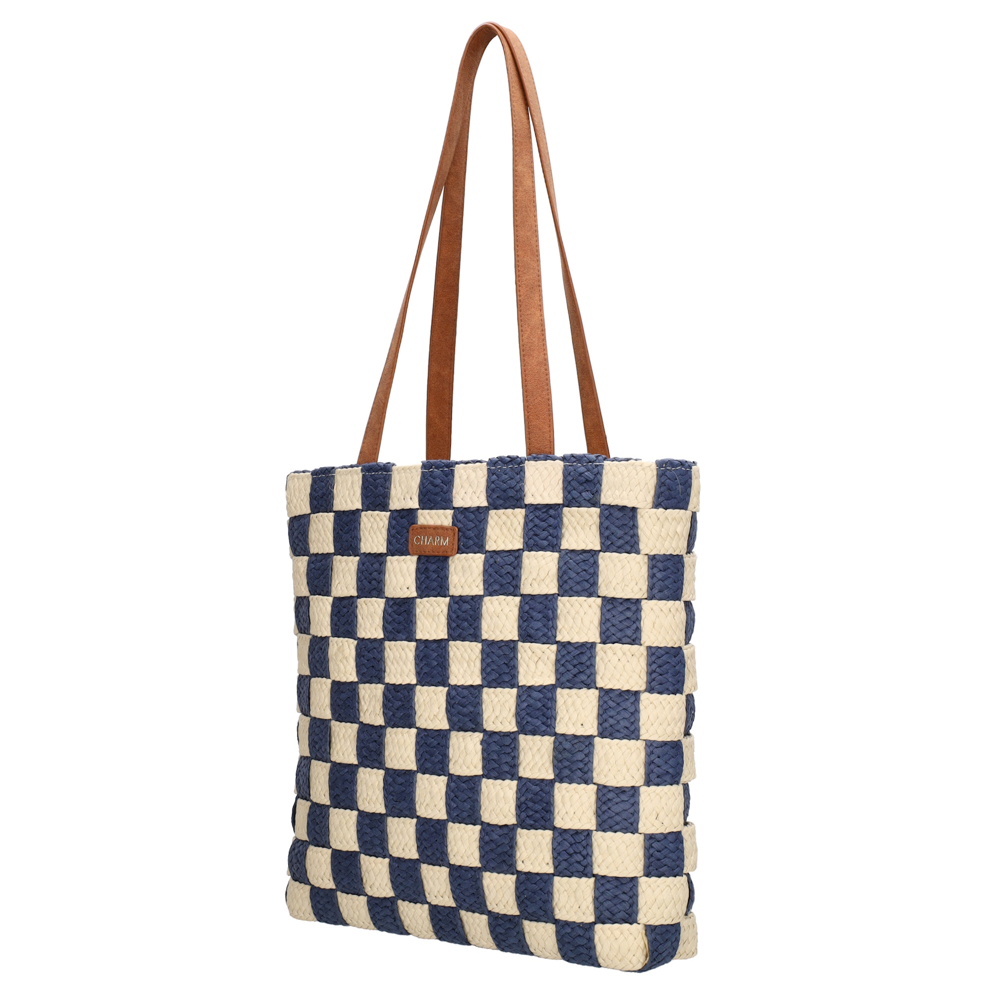 De Charm London Cornwall Shopper is de perfecte tas voor wie houdt van een stijlvolle, natuurlijke uitstraling. Gemaakt van gevlochten riet in twee kleuren, straalt deze tas een zomerse en trendy look uit. Dankzij het ruime hoofdvak, dat veilig afsluit met een rits, heb je voldoende ruimte voor al je dagelijkse essentials. Het binnenvak biedt extra opbergruimte voor kleinere spullen, zodat je alles georganiseerd kunt meenemen.