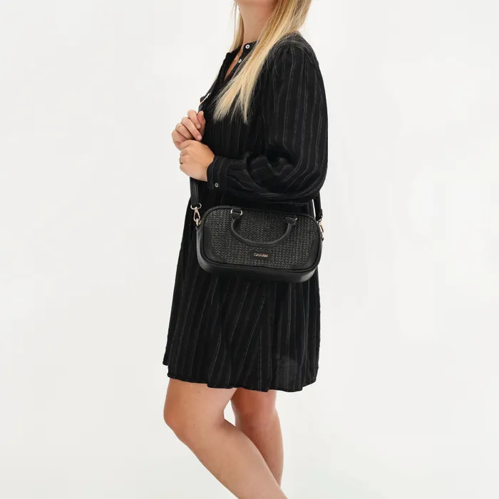 Deze elegante handtas met een stijlvolle raffia-look is niet alleen modieus, maar ook ontzettend veelzijdig. Dankzij de verstelbare en afneembare schouderband kun je de tas ook comfortabel als crossbody dragen — perfect wanneer je je handen vrij wilt houden. De tas biedt praktische opbergruimte met een ritsvak en een handig telefoonvak aan de binnenkant. Bovendien is de tas volledig afsluitbaar met een ritssluiting, zodat je spullen veilig opgeborgen blijven.