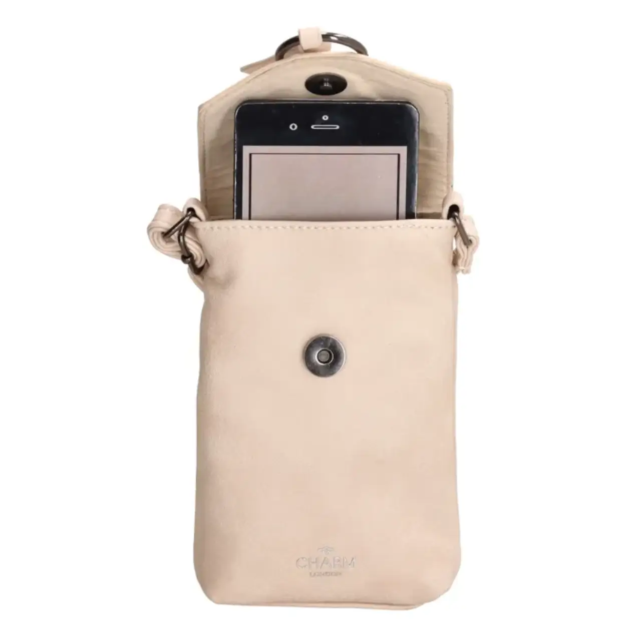 Helemaal leuk zijn deze telefoontasje van Charm London. leverbaar in 4 kleuren en gemaakt van imitatieleder