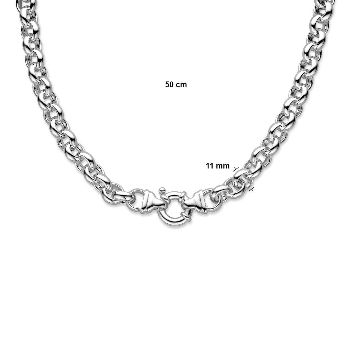 Zilveren collier met jasseron schakel. De schakelbreedte is 11mm.