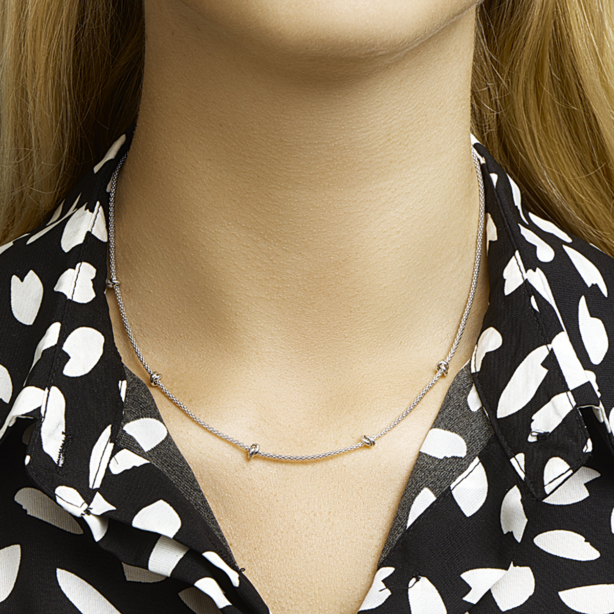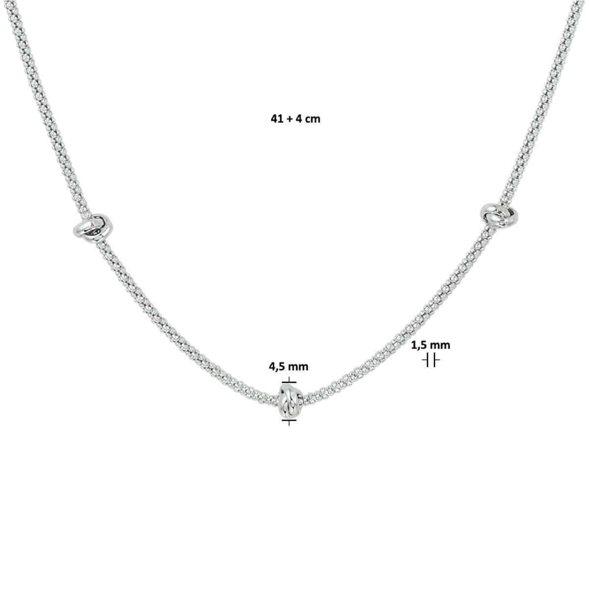 Gerhodineerd 925 zilveren collier uitgevoerd met poli afgewerkte knopen en een stevige karabijn sluiting. Het collier heeft een draaglengte van 41cm met een extensie van 4cm.