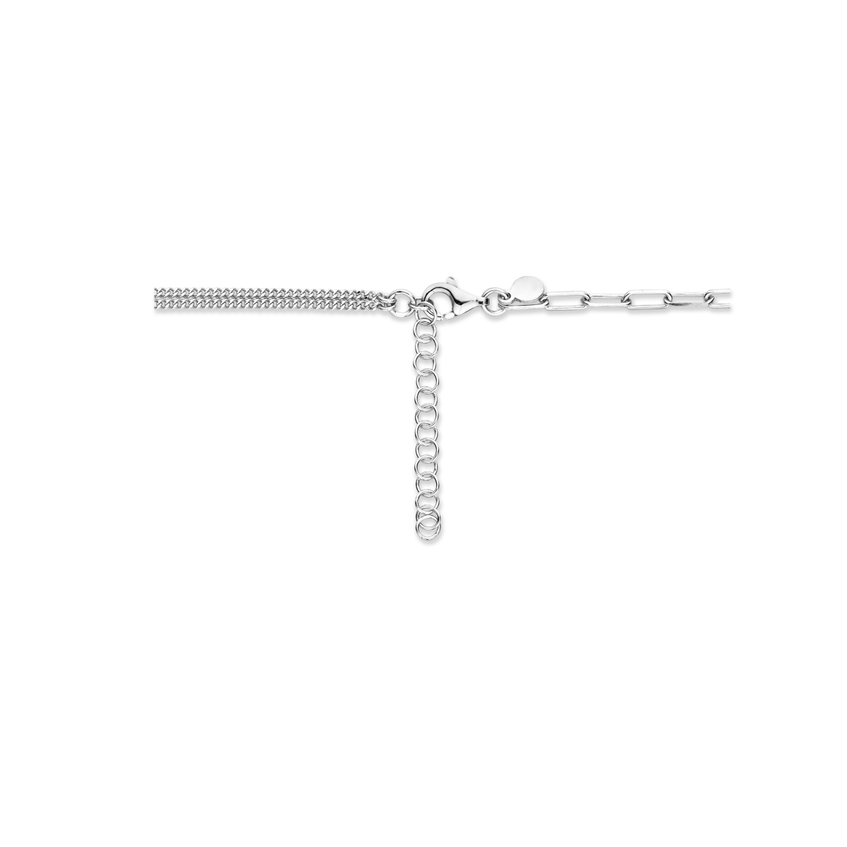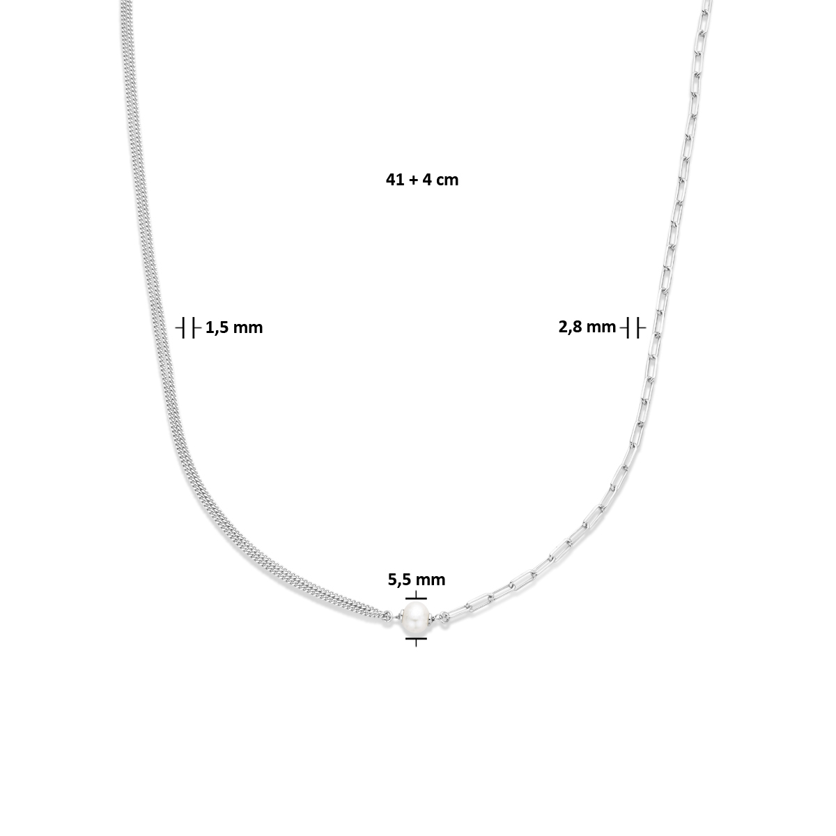 Gerhodineerd 925 zilveren collier met een zoetwaterparel. Het collier heeft een draaglengte van 41cm en een extensie van 4cm. Uitgevoerd met een karabijn sluiting.