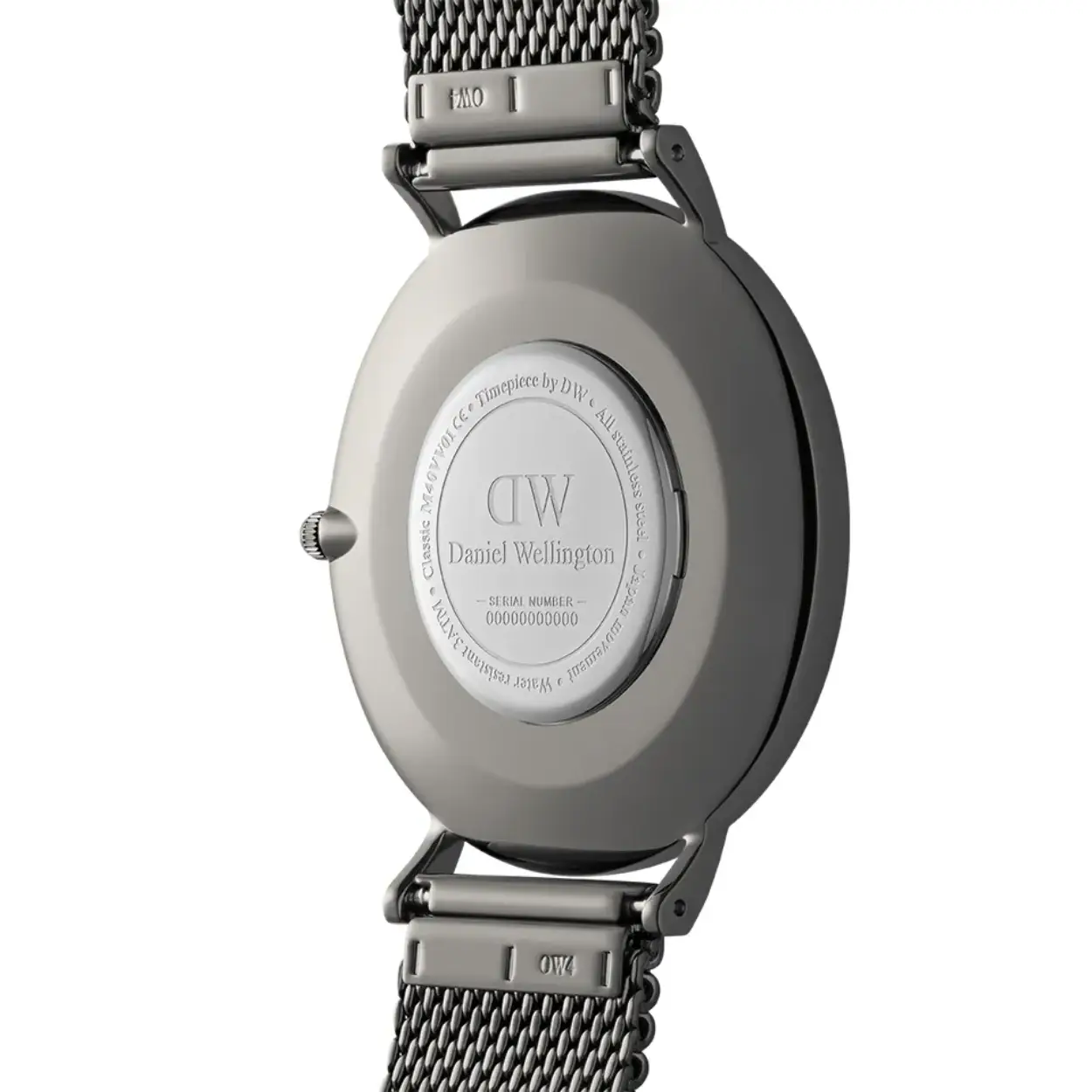 De Daniel Wellington Horloge Classic Mesh Arctic Silver (modelnummer DW00100628) heeft een elegante ronde kast van roestvrij staal met een blauwe wijzerplaat en strepen. Het horloge heeft een quartz uurwerk, Milanese mesh band en is nikkelvrij en anti-allergisch. Draag het met stijl op zowel formele als informele gelegenheden voor een tijdloze uitstraling. Waterbestendig niveau 3.