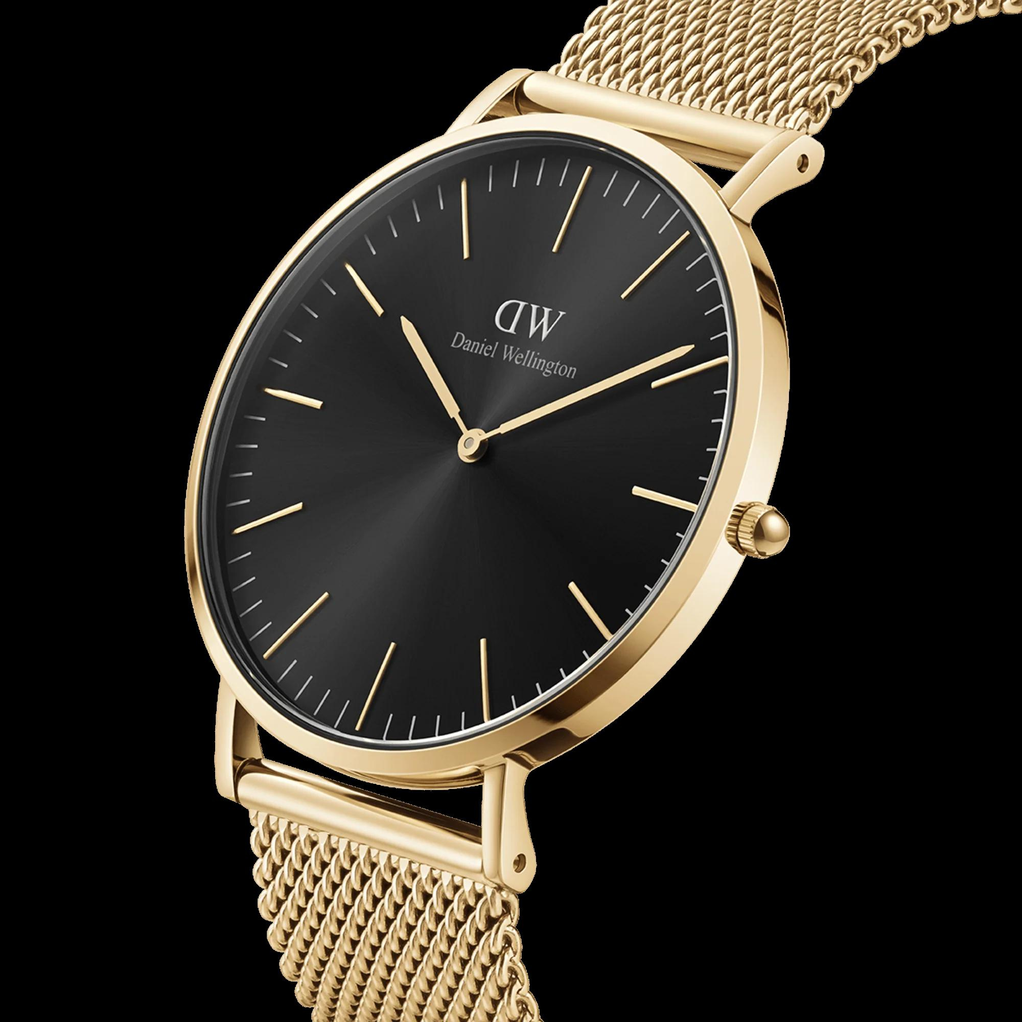 De Daniel Wellington Horloge Classic Mesh Onyx Gold (modelnummer DW00100631) is een elegante en stijlvolle polshorloge met een roestvrijstalen kast en zwart Milanese mesh-band. Dankzij het analoge kwarts uurwerk, ronde vorm en goudkleurige afwerking straalt het luxe uit. Waterdicht tot niveau 3 en nikkelvrij, ideaal voor dagelijks gebruik. Draag bij formele en casual outfits.