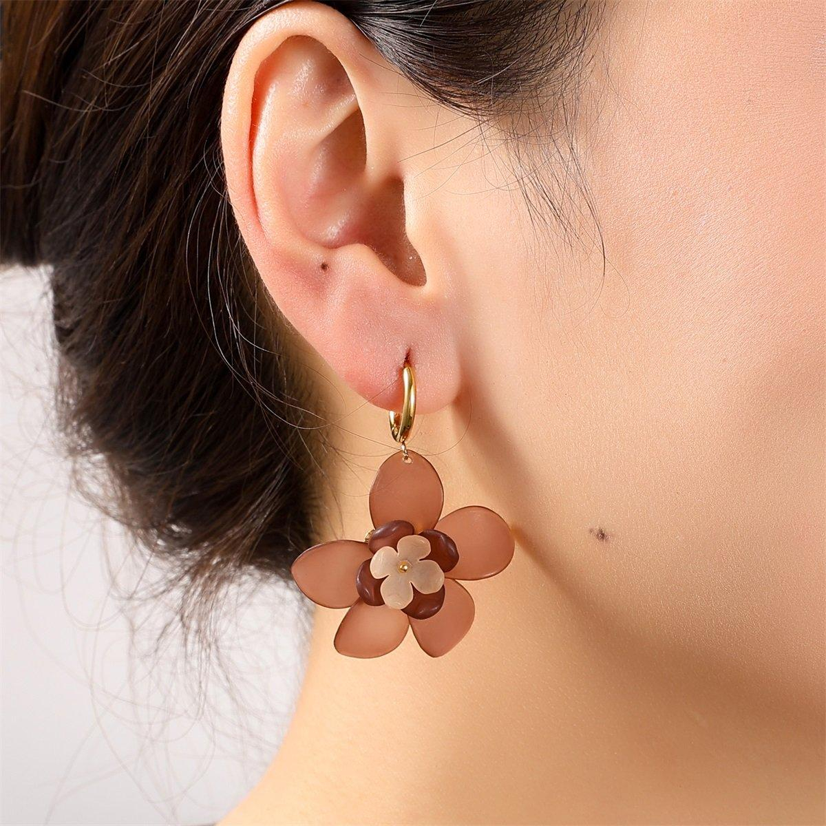 De Day & Eve oorringen Big Flower Hoop - 14K zijn prachtige creoolse oorbellen met een sierlijk bloemontwerp. Gemaakt met een bruine tint, voegen ze elegantie toe aan elke look. Draag ze met je haar opgestoken om de bloemdetails te accentueren. Perfect voor zowel casual als formele gelegenheden.