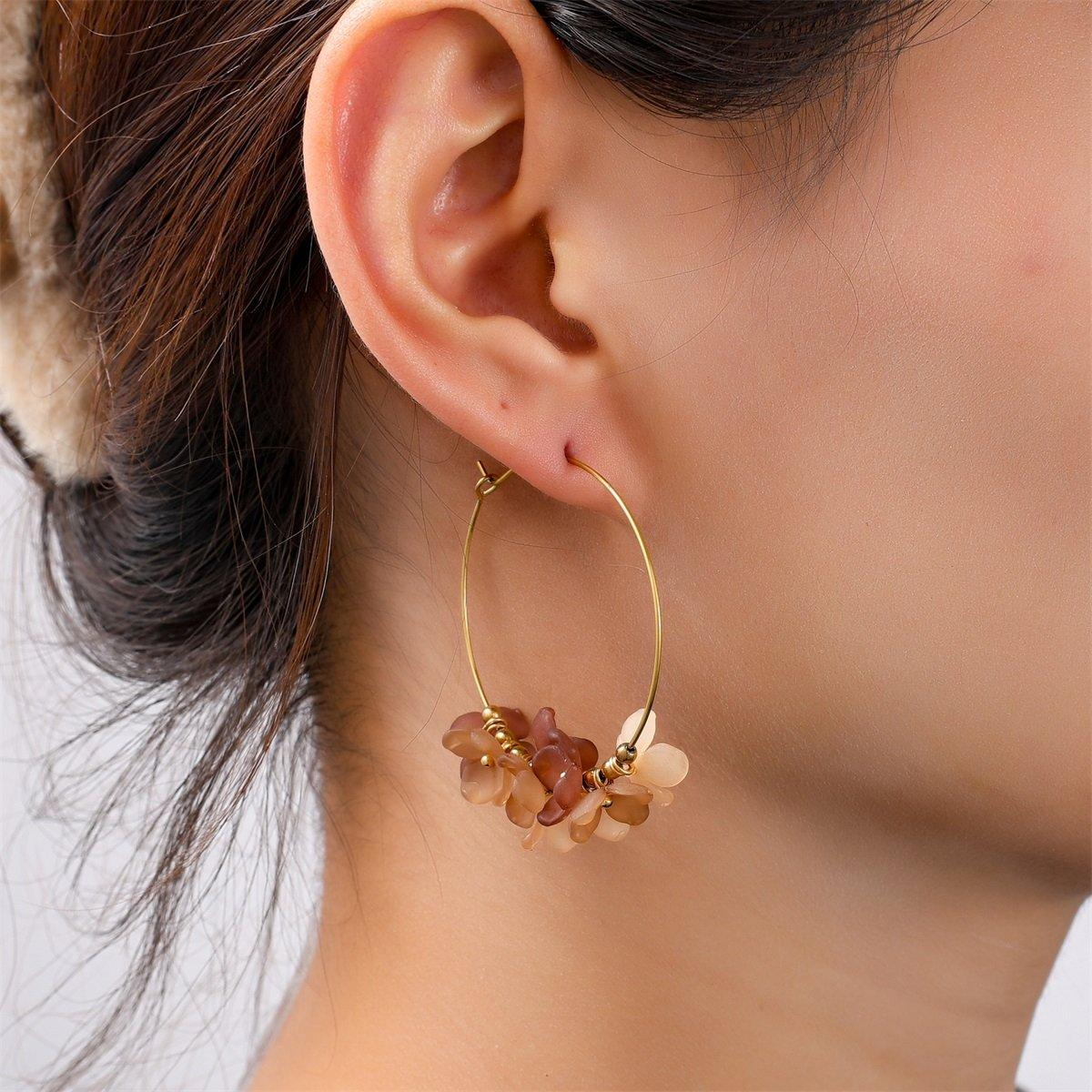 De Day & Eve oorringen Flower Hoop - 14K met modelnummer E56449-2 zijn prachtige creolen met een verfijnd bloemdesign. Gemaakt en afgewerkt in een elegante bruine tint. Deze juweeltjes voegen een vleugje verfijning toe aan elke outfit. Perfect voor zowel dagelijks gebruik als speciale gelegenheden. Draag ze solo voor een subtiele look, of combineer ze met andere sieraden.