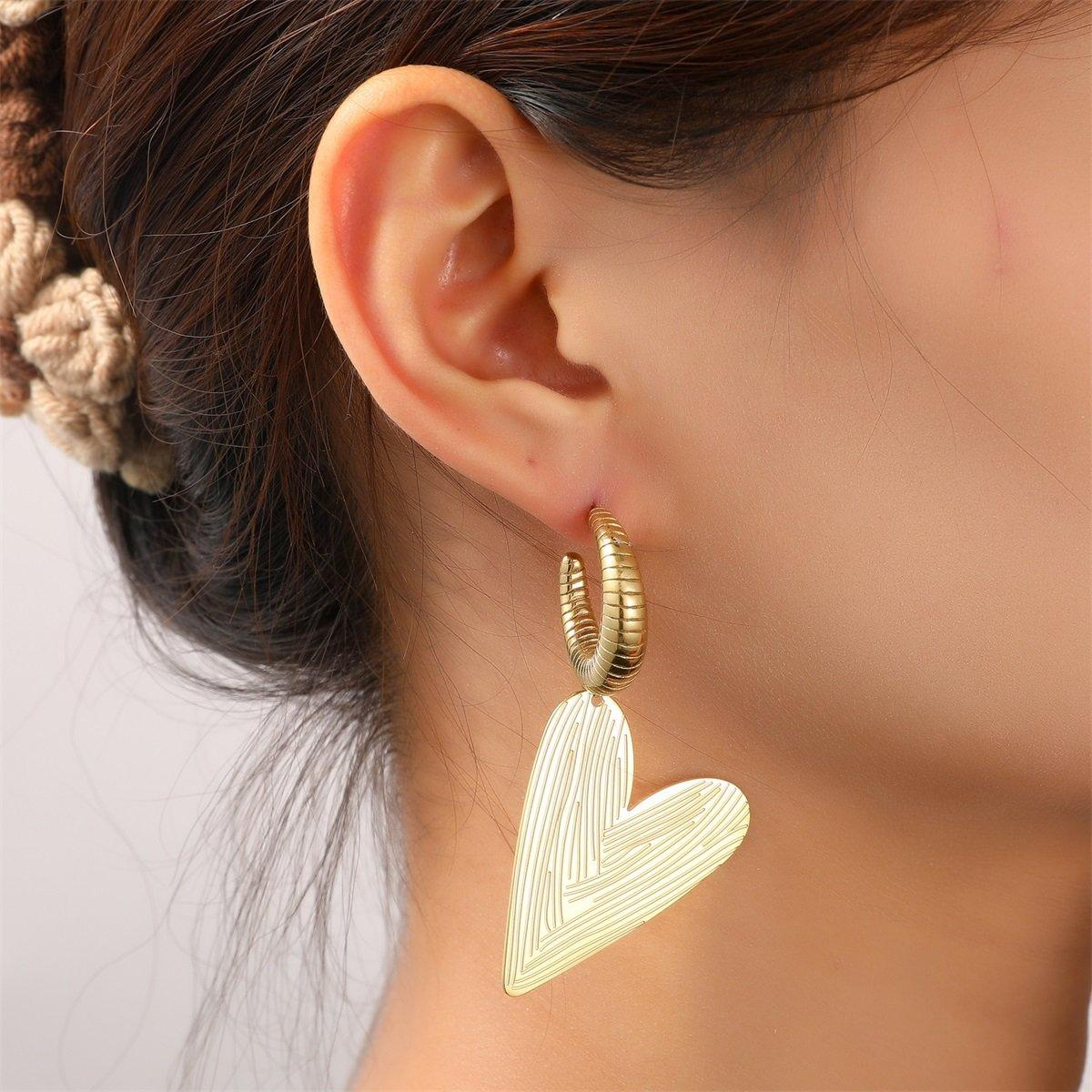 De Day & Eve oorringen Striped Heart Dangle, model E56273-2, zijn stijlvolle hoepeloorbellen met een charmante hartjeshanger. Deze tijdloze sieraden passen perfect bij zowel casual als chique outfits. Combineer ze met andere subtiele sieraden voor een elegante look of draag ze als statementstuk voor een trendy uitstraling. Een veelzijdige toevoeging aan je juwelencollectie.