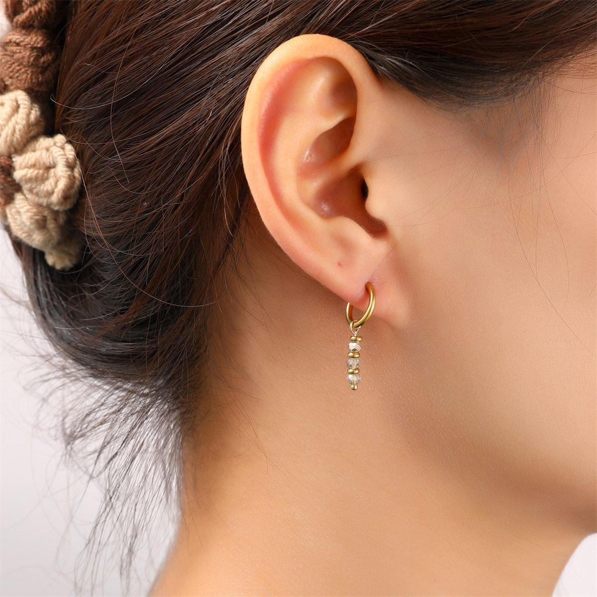 De Day & Eve oorringen Triple Bead Hoop - 14K goud, model E56143-3, zijn stijlvolle creool oorbellen, gekenmerkt door hun drievoudige kraaldetail. Perfect te combineren met zowel casual als formele outfits voor een verfijnde look. Draag ze solo voor een subtiele chic of samen met andere sieraden voor een statement.