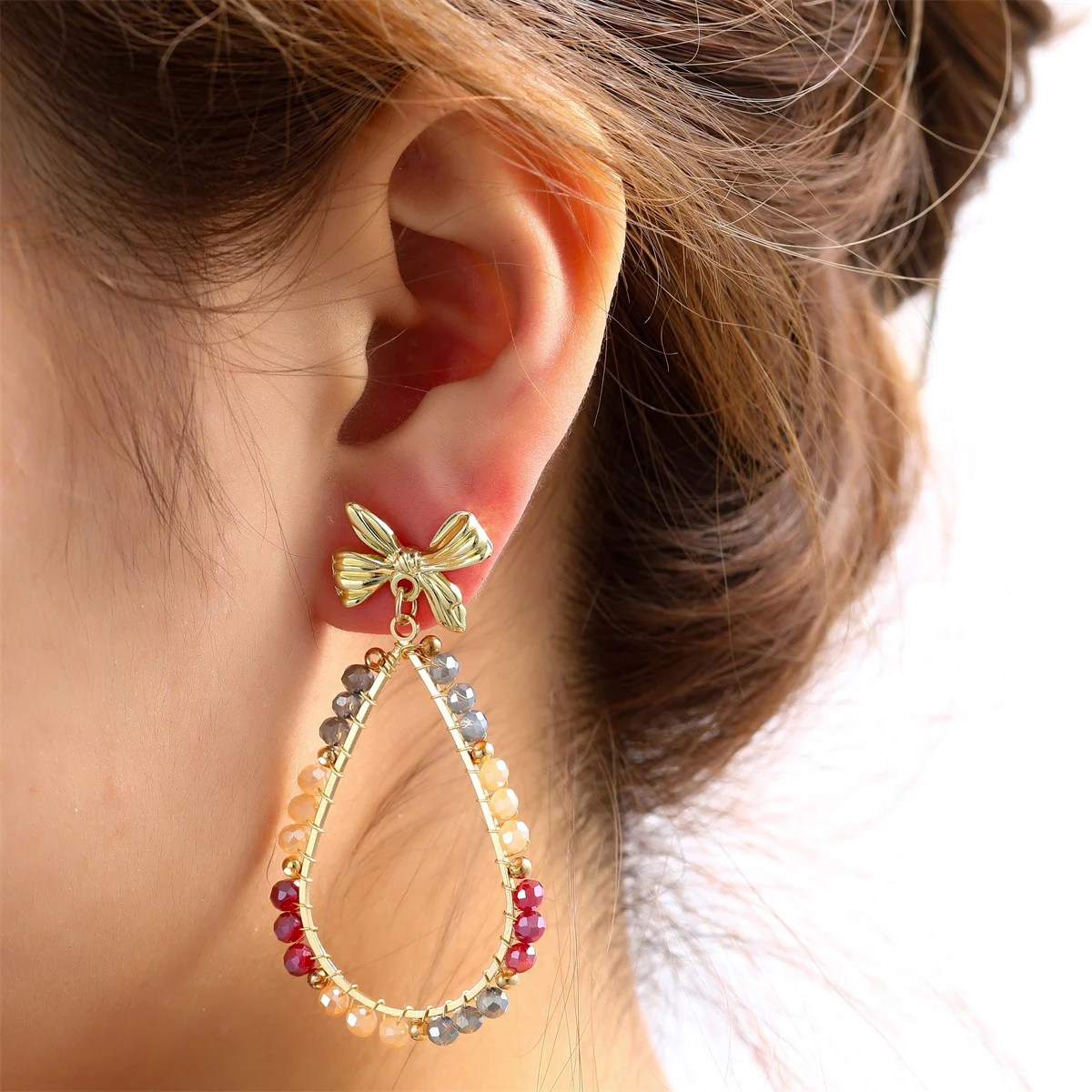De Day & Eve oorstekers Bow Drop Dangle, zijn 14K vergulde oorringen met een elegante taupe en bordeaux afwerking. Ideaal voor een verfijnde look, zijn deze sieraden perfect voor zowel formele als informele gelegenheden.