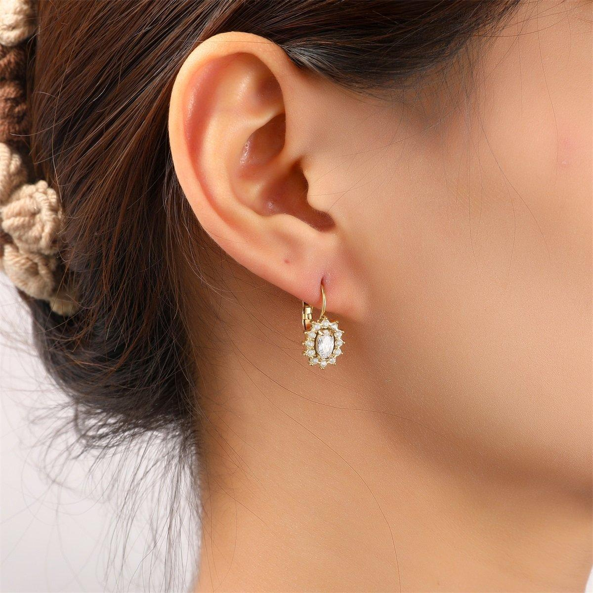 De Day & Eve oorstekers French Hook Oval - 14K + crystal, met modelnummer E56375-2, zijn schitterende creolen gemaakt van kristal. Deze elegante oorbellen dragen perfect bij zowel formele als informele gelegenheden. Draag ze met opgestoken haar voor een stijlvolle en verfijnde look die de schittering van de kristallen benadrukt.
