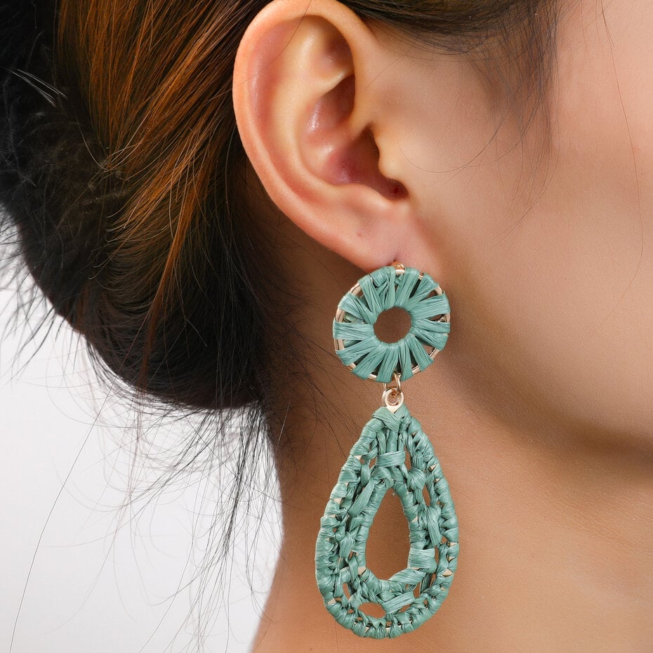 De Day & Eve oorstekers Raffia Dangle - Green, zijn prachtige oorbellen met een lengte van 83mm. De groene raffia geeft een unieke, natuurlijke uitstraling. Combineer ze met zomerse outfits voor een frisse, bohemien look. Perfect voor zowel casual als feestelijke gelegenheden. Laat je stijl stralen!
