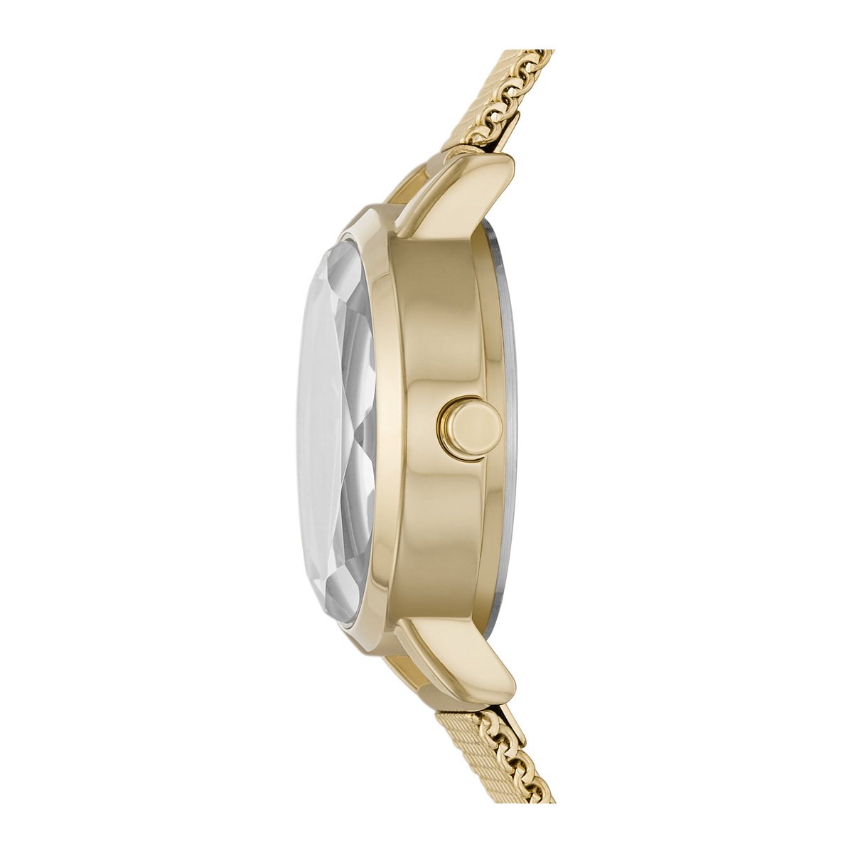 Dit DKNY Soho horloge van 24�mm heeft een groene sunray-wijzerplaat, uurwerk met drie wijzers en een goudkleurig roestvrijstalen mesh bandje dat verwisselbaar is met een groen leren bandje.