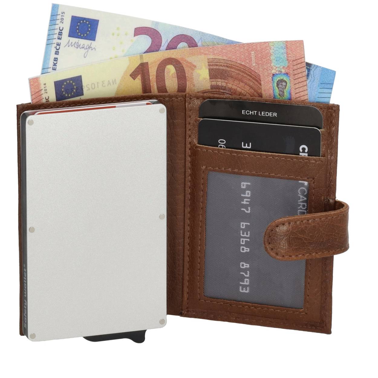 Deze veiligheidsportemonnee heeft een dubbel d-fh-serie ontwerp en is uitgevoerd in bruin. Het biedt bescherming tegen diefstal van persoonlijke gegevens dankzij de RFID-blokkeringstechnologie. De beste manier om het te dragen is om het in uw zak te bewaren . De portemonnee is compact en duurzaam, ideaal voor dagelijks gebruik. Beschermt uw kaarten en geld in stijl.