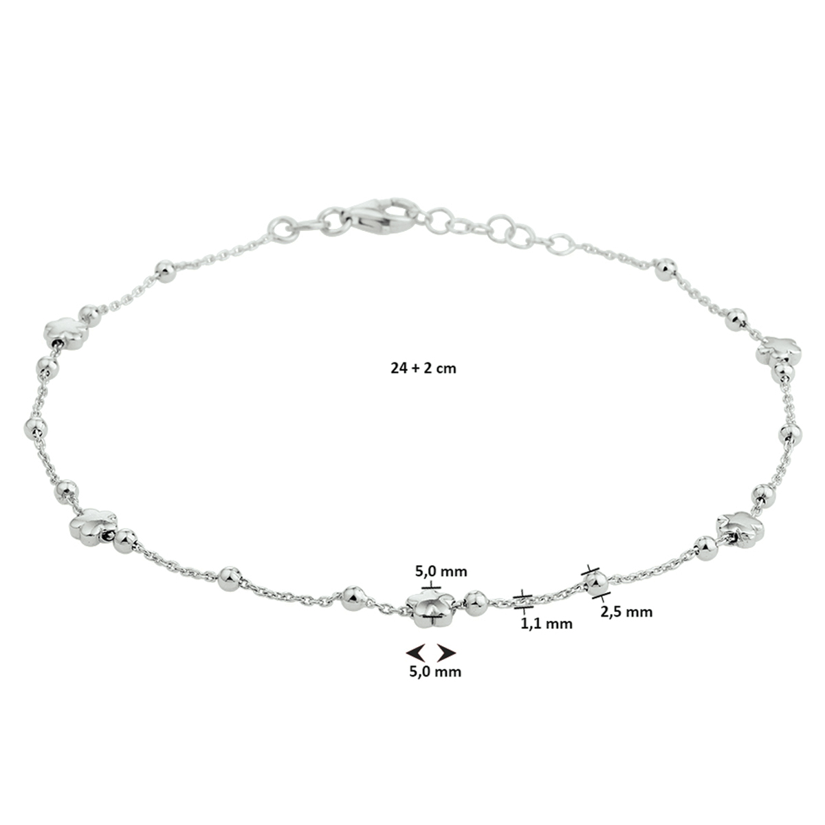 Gerhodineerd 925 zilveren enkelbandje met een draaglengte van 24cm en een extensie van 2cm. Het enkelbandje heeft een karabijn sluiting.