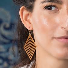 Goudkleurige oorbellen voorzien van haakjes met een lange hanger in de vorm van een ruit. Blijft lang mooi, irriteert niet en geeft niet af.