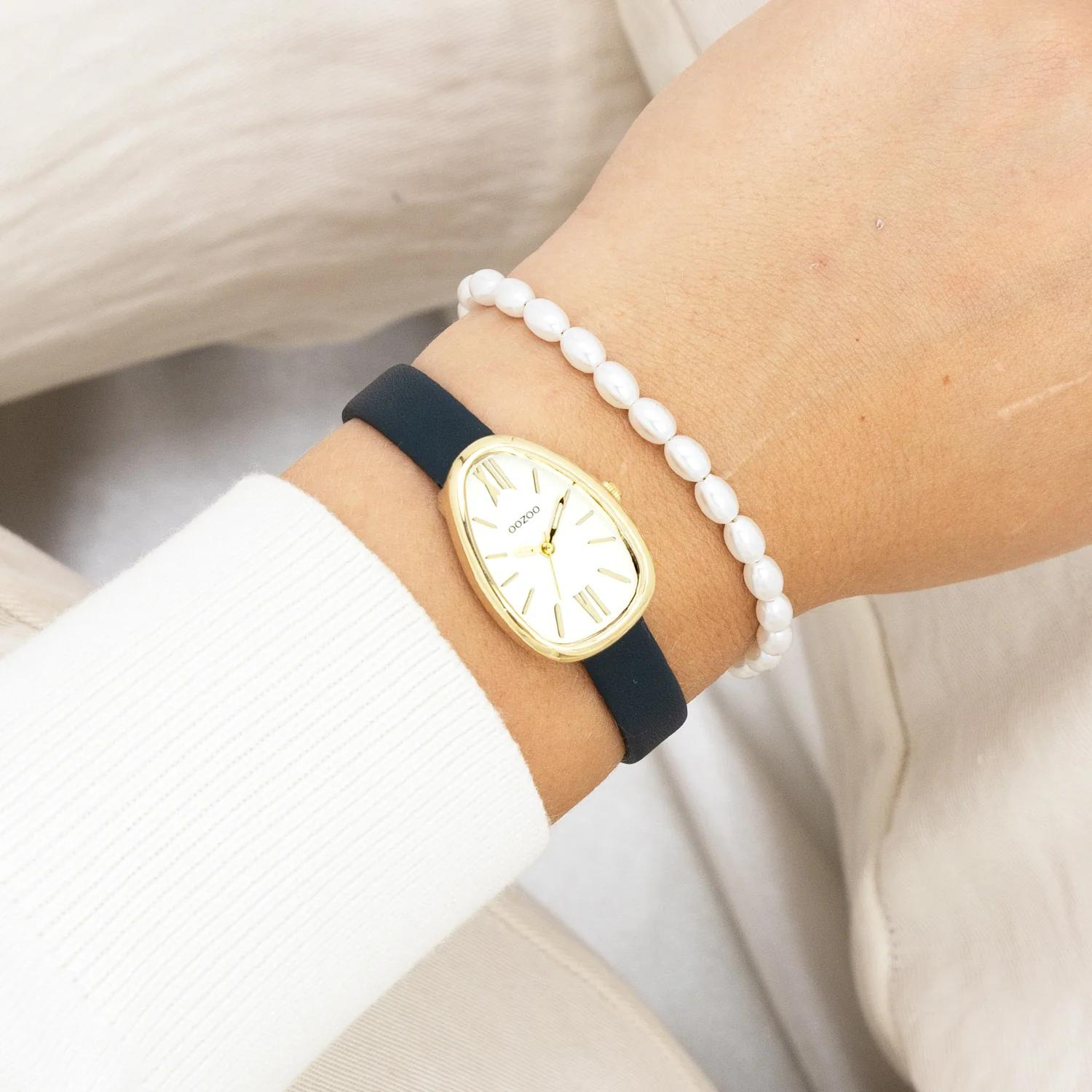 Val op met dit prachtige eivormige dameshorloge uit de trendy OOZOO Timepieces-collectie. De C11636 heeft een donkergroene leren band en een 31x22 mm goudkleurige metalen horlogekast. Je maakt een echt fashion statement met deze witte wijzerplaat, goudkleurige strepen, Romeinse cijfers en bijpassende wijzers. Dit onmisbare horloge voor je garderobe heeft mineraalglas, een roestvrijstalen achterplaat en is nikkelbestendig. Dit horloge heeft een 2ATM Japans uurwerk en wordt geleverd met 2 jaar garantie