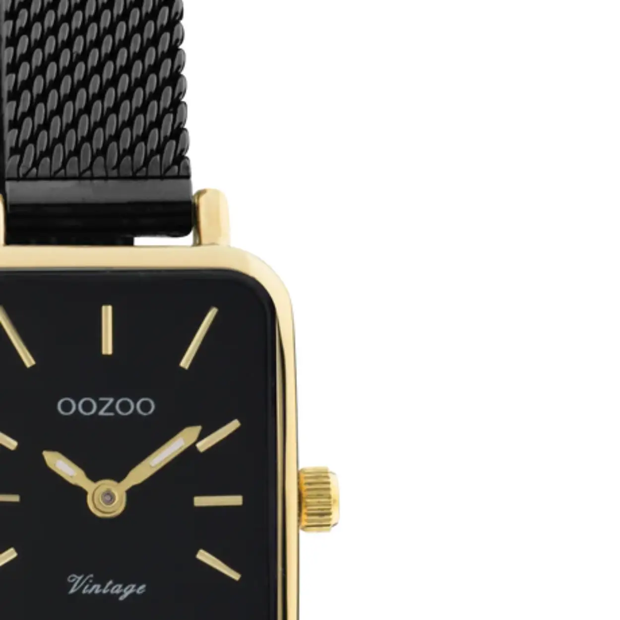 De klassieke look blijft centraal staan in deze trendy serie en daarom is dit OOZOO vintage rechthoekig design met een speelse knipoog dé musthave van het seizoen! Dit dames horloge is de perfecte combinatie van comfort en fashion met zijn 26mm x 21 mm goudkleurige metalen horlogekast en zwarte wijzerplaat. De wijzerplaat heeft goudkleurige strepen tijdsaanduidingen en goudkleurige kleurige wijzers. De goudkleurige glanzend metalen mesh armband maakt dit horloge tot een trendy accessoire dat je elke dag kunt dragen. Dit horloge voegt de sprankeling toe aan je outfit. Het mineraalglas ligt in een 6,9 mm dunne metalen horlogekast met IP-plating. De C20269 heeft een stainless steel achterplaat en is nikkel-safe. Dit horloge heeft een 2ATM Japans uurwerk en wordt gedekt door een garantie van 2 jaar