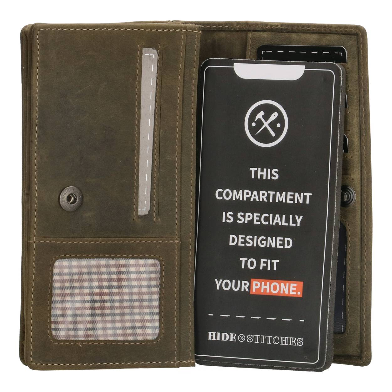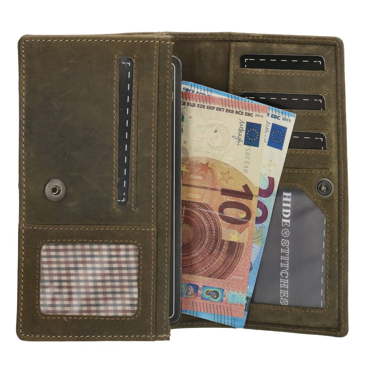 Leren portemonnee van Hide & Stiches. Je pasjes zijn veilig door de RFID Blocking kunnen ze niet gescand worden