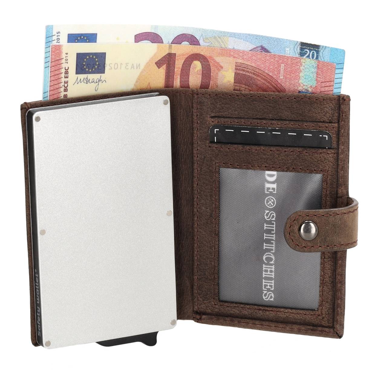 Strak design en ideaal in gebruik, dat kun je zeggen over deze safety wallet van Hide & Stitiches. De portemonnee sluit door middel van een drukknoopsluiting. In de safety wallet is ruimte voor verschillende credticards en wat briefgeld. Op de achterzijde van de safety wallet bevindt zich een ritsvakje waar je bijvoorbeeld wat muntgeld in kwijt zou kunnen. Scoor jij deze topper?