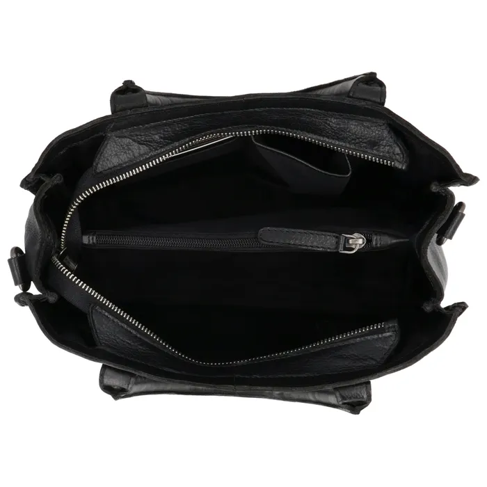 De binnenkant is slim ingedeeld met een tussenvak, een ritsvak, een telefoonvak en meerdere pasjesvakjes, zodat je jouw spullen overzichtelijk kunt opbergen. Aan de achterkant bevindt zich een extra ritsvak voor snelle toegang tot je essentials. De tas heeft twee stevige handvatten en wordt geleverd met een verstelbare en afneembare schouderband, zodat je hem ook comfortabel over de schouder kunt dragen.