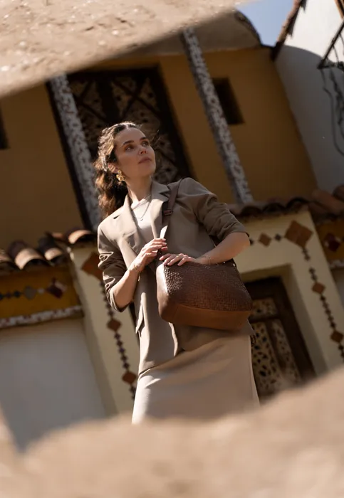 De Hide & Stitches Inspired by Illusion Schoudertas is een elegante leren tas met een handgeweven voorkant, die zorgt voor een unieke en ambachtelijke uitstraling. Het compacte en praktische ontwerp maakt deze tas ideaal voor dagelijks gebruik.