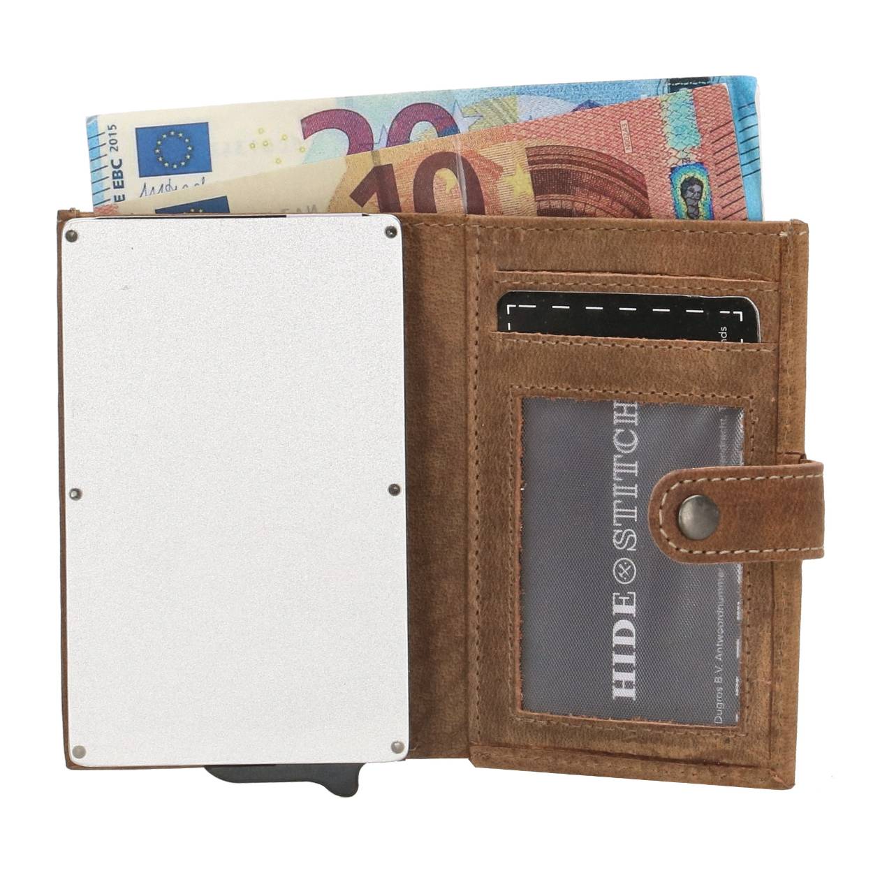 Deze safety wallet van Hide & Stitches heeft leuke stiksel. en je pasjes zijn veilig opgeborgen