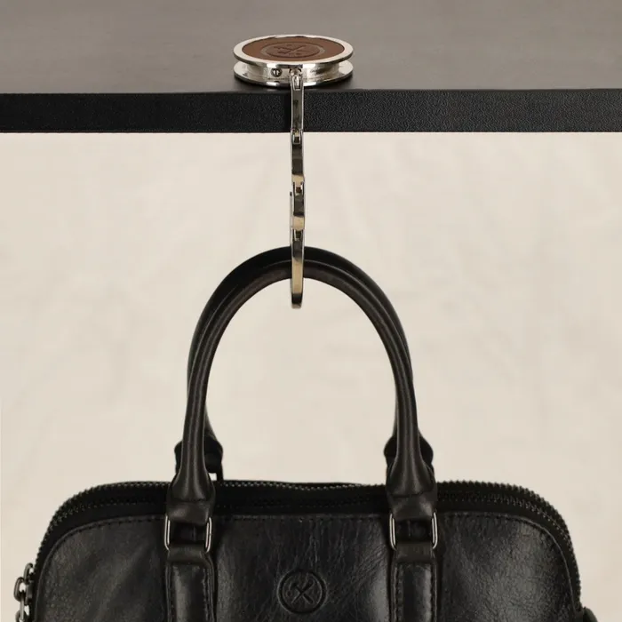 Geen slingerende tas meer met deze Tassenhanger hang jij je tas simpel op aan tafel