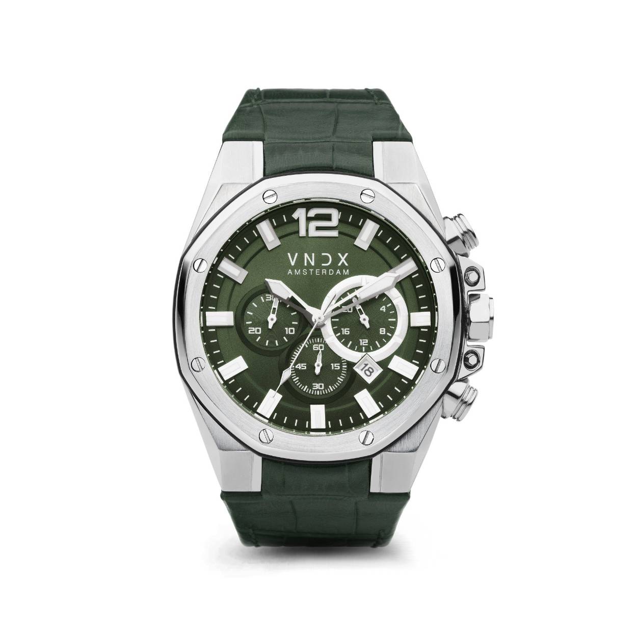 Dit horloge uit de Wise Man collectie is een cool en stijlvol horloge voor de echte man. De combinatie van elegant donkergroen Italiaans kwaliteitsleer dat we voor de band hebben gebruikt, met een modern massief stalen kast en een opvallende groene wijzerplaat, maken dit horloge een waar genot om te dragen. Een uniek en stijlvol ontwerp dat zich niet snel zal vervelen!