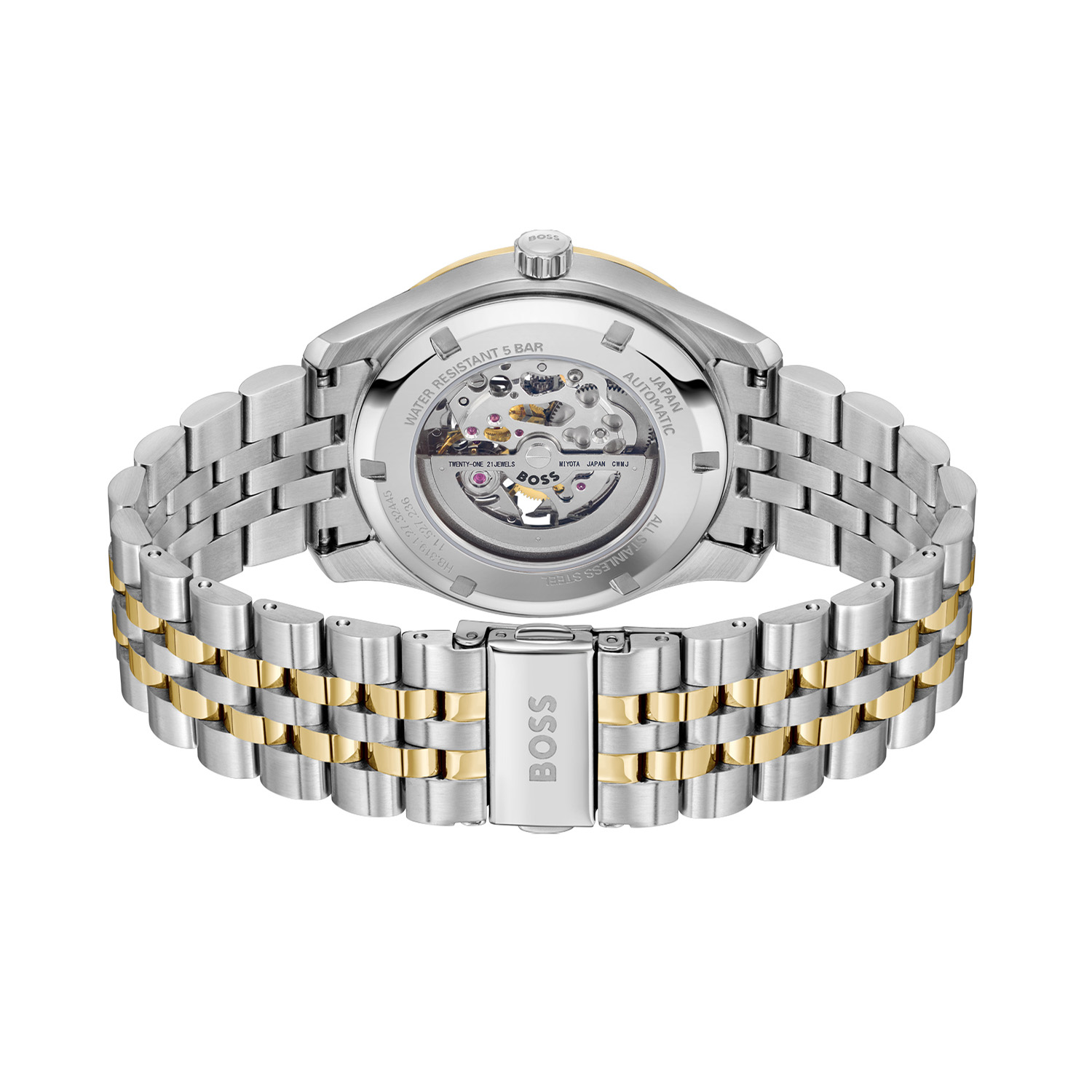 Dit BOSS horloge uit de PRINCIPE SKELETON serie met artikelnr: HB1514237 heeft een luxe uitstraling. Zeer geschikt voor de moderne stijlvolle man van nu. Het herenhorloge valt op door zijn stalen horlogekast met een gladde goudkleurige bezel en een opengewerkte wijzerplaat met alleen een zilverwitte buitenrand met romeinse cijfers en verfijnde wijzers. Opvallend is het automatische uurwerk dat zowel voor als achter te zien is. Aan de kast zit een stalen bicolor schakelband met een vouwsluiting. Het horloge heeft een doorsnee van 41mm met een mineraalglas en is 3ATM.