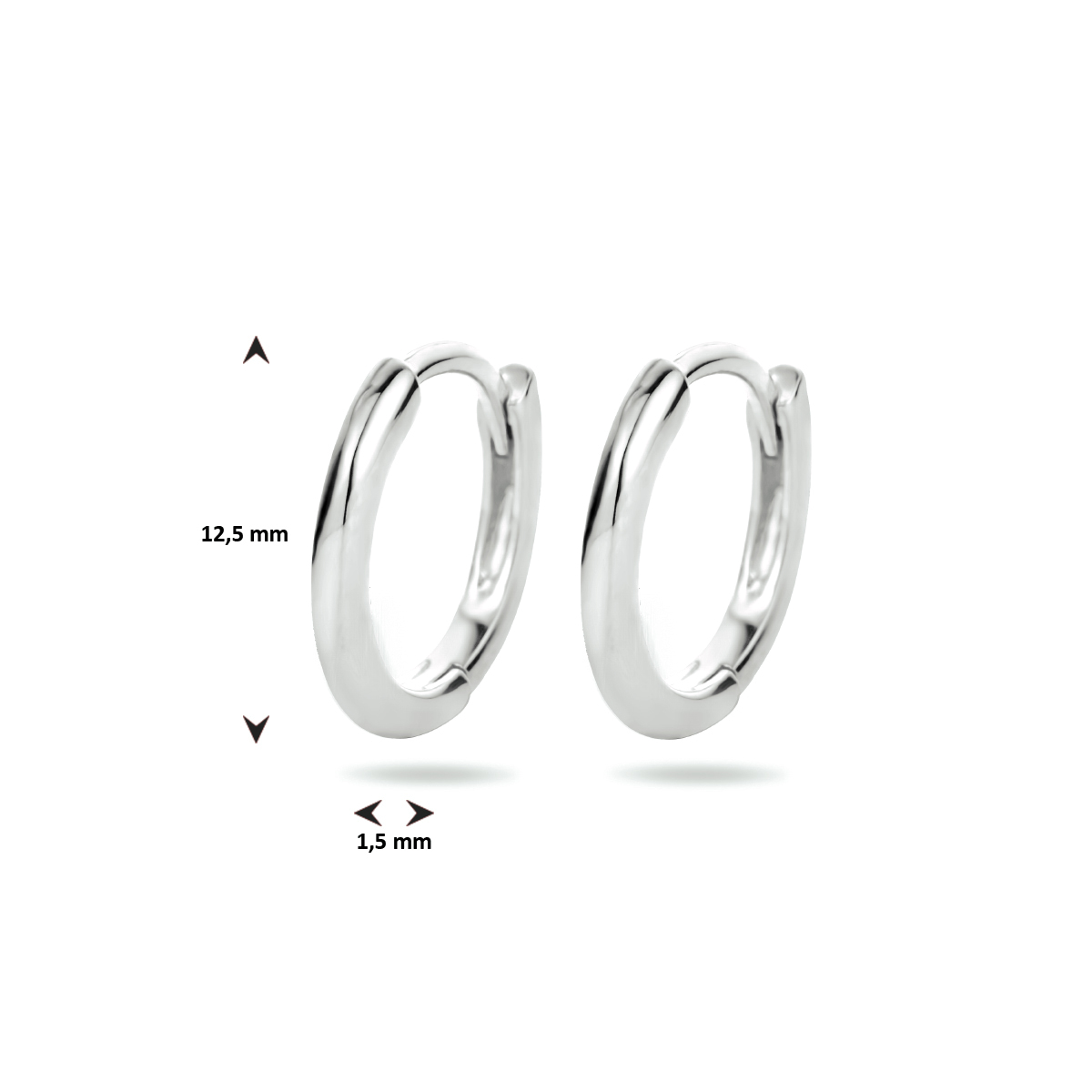 Gerhodineerd 925 zilveren klapoorringen. De klapoorringen hebben een afmeting van 12.5x1.5mm.