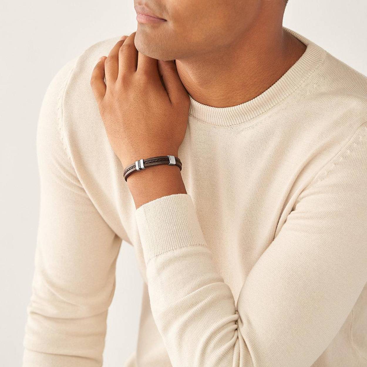 Leren armband van het merk Fossil met stalen ornamenten en sluiting
