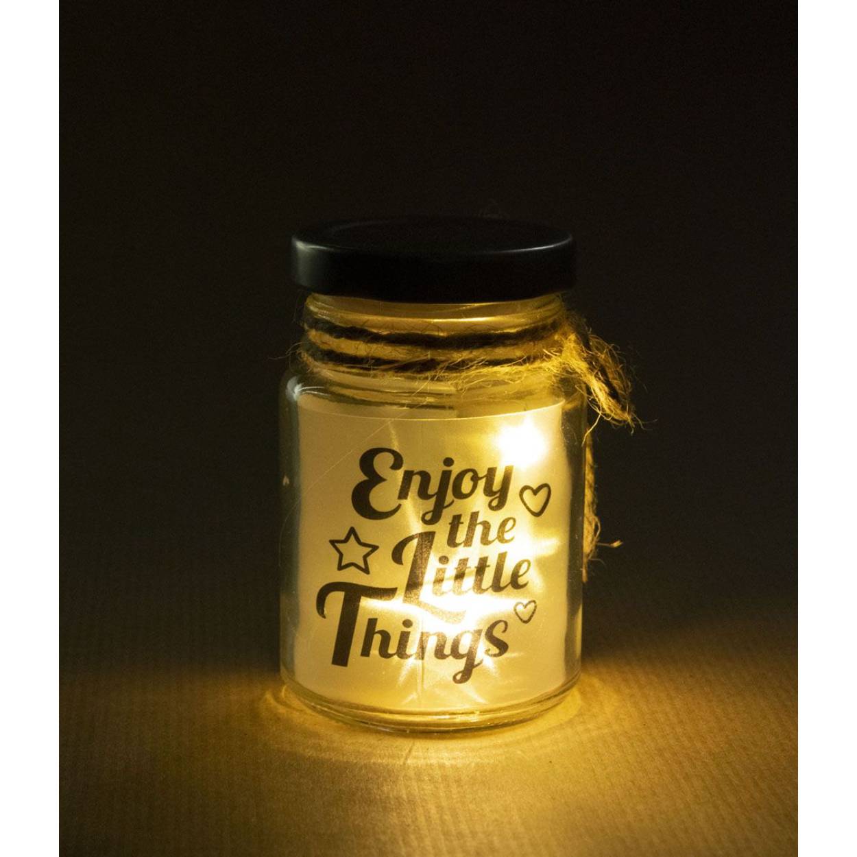 De Star Lights van Paper Dreams zijn een prima toevoeging voor uw winkel. Deze Little Star Light met tekst Enjoy the little things is gemaakt van glas, en door middel van een ledlampje is de tekst die op de Star Light staat extra goed te zien. De batterij is inbegrepen en is oplaadbaar. Het artikel is ongeveer 8,5 centimeter hoog inclusief deksel en de diameter is 5 centimeter.
