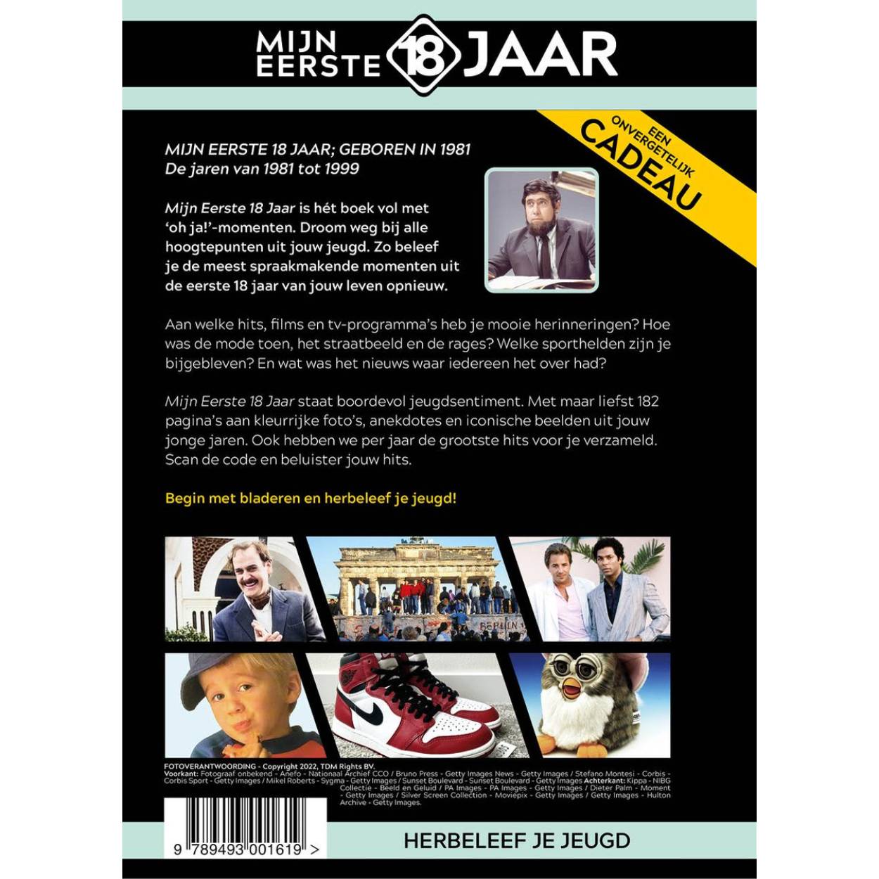 MIJN EERSTE 18 JAAR; GEBOREN IN 1981 De jaren van 1981 tot 1999 Mijn Eerste 18 Jaar is hét boek vol met ‘oh ja!’-momenten. Droom weg bij alle hoogtepunten uit jouw jeugd. Zo beleef je de meest spraakmakende momenten uit de eerste 18 jaar van jouw leven opnieuw. Aan welke hits, films en tv-programma’s heb je mooie herinneringen? Hoe was de mode toen, het straatbeeld en de rages? Welke sporthelden zijn je bijgebleven? En wat was het nieuws waar iedereen het over had? Mijn Eerste 18 Jaar staat boordevol jeugdsentiment. Met maar liefst 182 pagina’s aan kleurrijke foto’s, anekdotes en iconische beelden uit jouw jonge jaren. Ook hebben we per jaar de grootste hits voor je verzameld. Scan de code en beluister jouw hits. Begin met bladeren en herbeleef je jeugd!