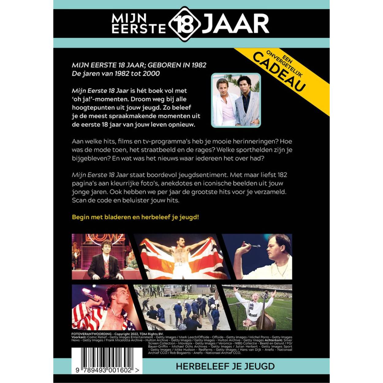 MIJN EERSTE 18 JAAR; GEBOREN IN 1982 De jaren van 1982 tot 2000 Mijn Eerste 18 Jaar is hét boek vol met ‘oh ja!’-momenten. Droom weg bij alle hoogtepunten uit jouw jeugd. Zo beleef je de meest spraakmakende momenten uit de eerste 18 jaar van jouw leven opnieuw. Aan welke hits, films en tv-programma’s heb je mooie herinneringen? Hoe was de mode toen, het straatbeeld en de rages? Welke sporthelden zijn je bijgebleven? En wat was het nieuws waar iedereen het over had? Mijn Eerste 18 Jaar staat boordevol jeugdsentiment. Met maar liefst 182 pagina’s aan kleurrijke foto’s, anekdotes en iconische beelden uit jouw jonge jaren. Ook hebben we per jaar de grootste hits voor je verzameld. Scan de code en beluister jouw hits. Begin met bladeren en herbeleef je jeugd!