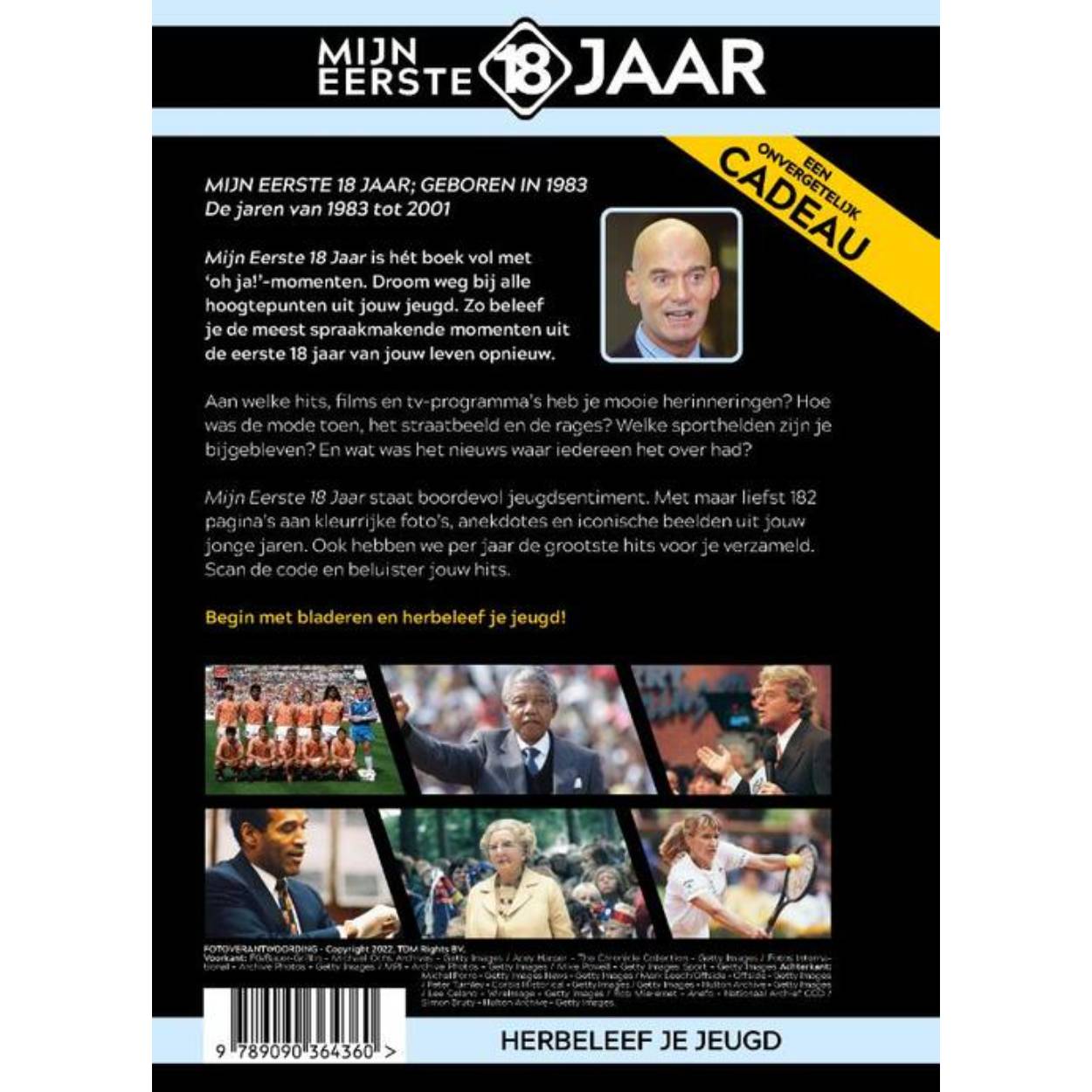 MIJN EERSTE 18 JAAR; GEBOREN IN 1983 De jaren van 1983 tot 2001 Mijn Eerste 18 Jaar is hét boek vol met ‘oh ja!’-momenten. Droom weg bij alle hoogtepunten uit jouw jeugd. Zo beleef je de meest spraakmakende momenten uit de eerste 18 jaar van jouw leven opnieuw. Aan welke hits, films en tv-programma’s heb je mooie herinneringen? Hoe was de mode toen, het straatbeeld en de rages? Welke sporthelden zijn je bijgebleven? En wat was het nieuws waar iedereen het over had? Mijn Eerste 18 Jaar staat boordevol jeugdsentiment. Met maar liefst 182 pagina’s aan kleurrijke foto’s, anekdotes en iconische beelden uit jouw jonge jaren. Ook hebben we per jaar de grootste hits voor je verzameld. Scan de code en beluister jouw hits. Begin met bladeren en herbeleef je jeugd!