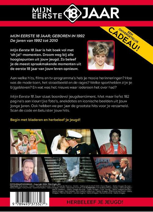 MIJN EERSTE 18 JAAR; GEBOREN IN 1992De jaren van 1992 tot 2010Mijn Eerste 18 Jaar is hét boek vol met 'oh ja!'-momenten. Droom weg bij alle hoogtepunten uit jouw jeugd. Zo beleef je de meest spraakmakende momenten uit de eerste 18 jaar van jouw leven opnieuw. Aan welke hits, films en tv-programma's heb je mooie herinneringen? Hoe was de mode toen, het straatbeeld en de rages? Welke sporthelden zijn je bijgebleven? En wat was het nieuws waar iedereen het over had? Mijn Eerste 18 Jaar staat boordevol jeugdsentiment. Met maar liefst 182 pagina's aan kleurrijke foto's, anekdotes en iconische beelden uit jouw jonge jaren. Ook hebben we per jaar de grootste hits voor je verzameld. Scan de code en beluister jouw hits.Begin met bladeren en herbeleef je jeugd!