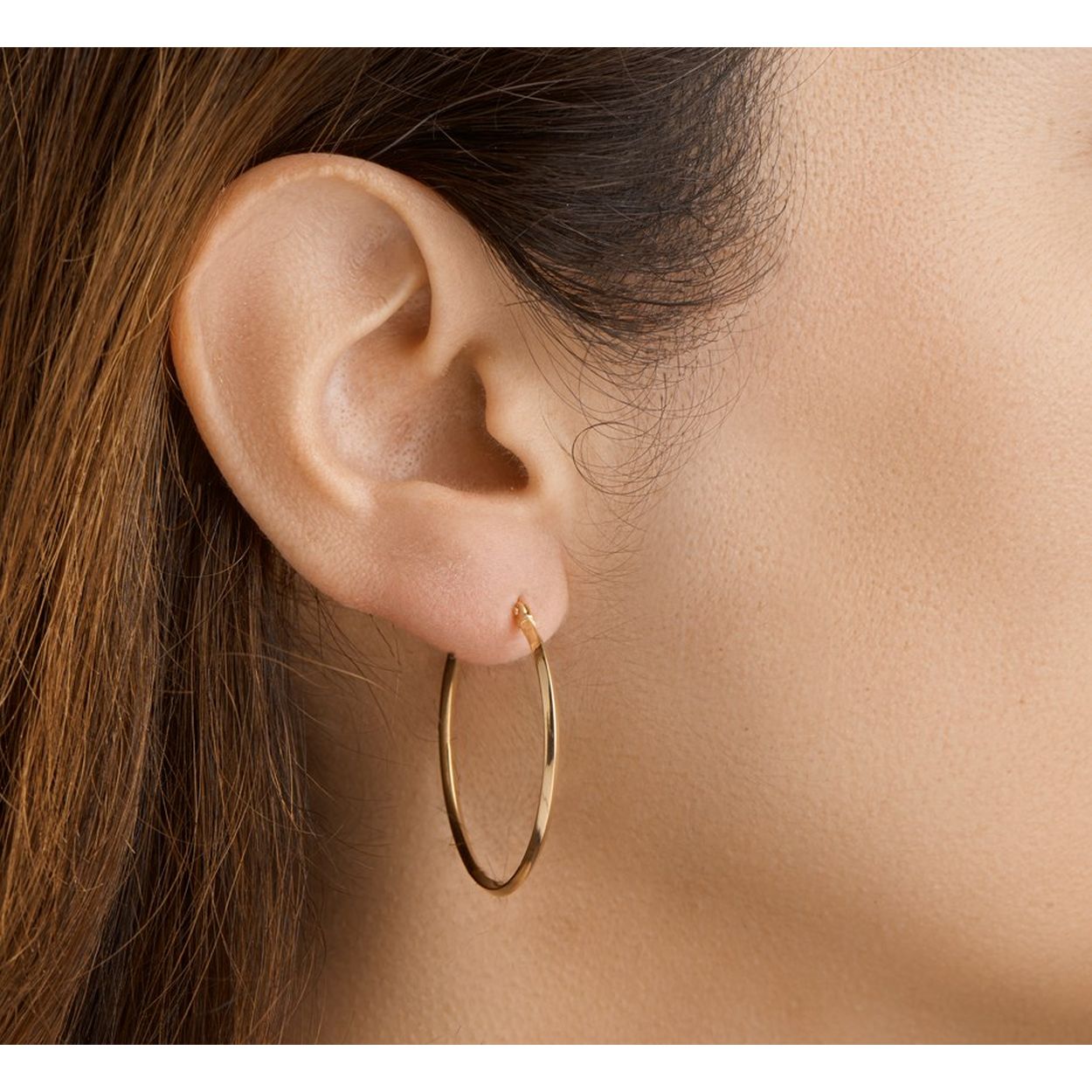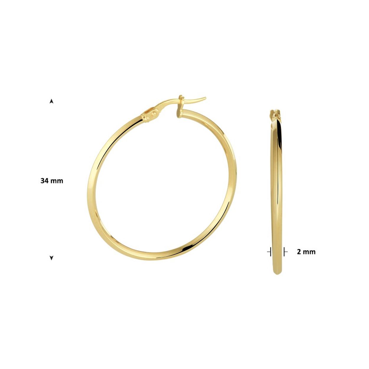 14k Geelgouden oorringen met een poli afwerking en een diameter van 34mm. Minimalistisch design voor een exclusieve uitstraling.
