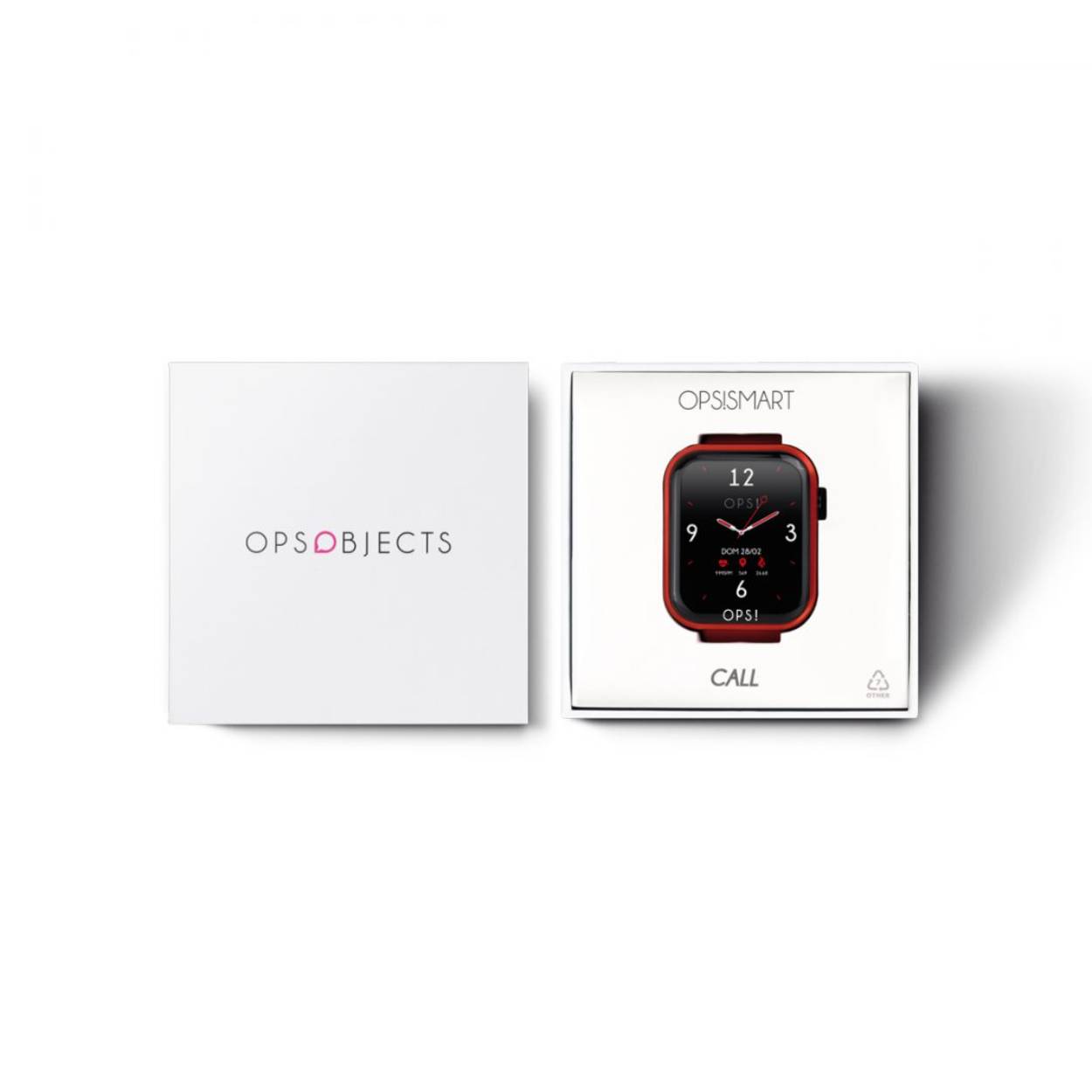 Smartwatch met aluminium en ABS kast en siliconen band. Kastafmetingen 44x37x13 mm met 1,83-inch full-touch kleurenscherm. Binnenomtrek band: 180 mm tot 140 mm. Stalen gespsluiting.