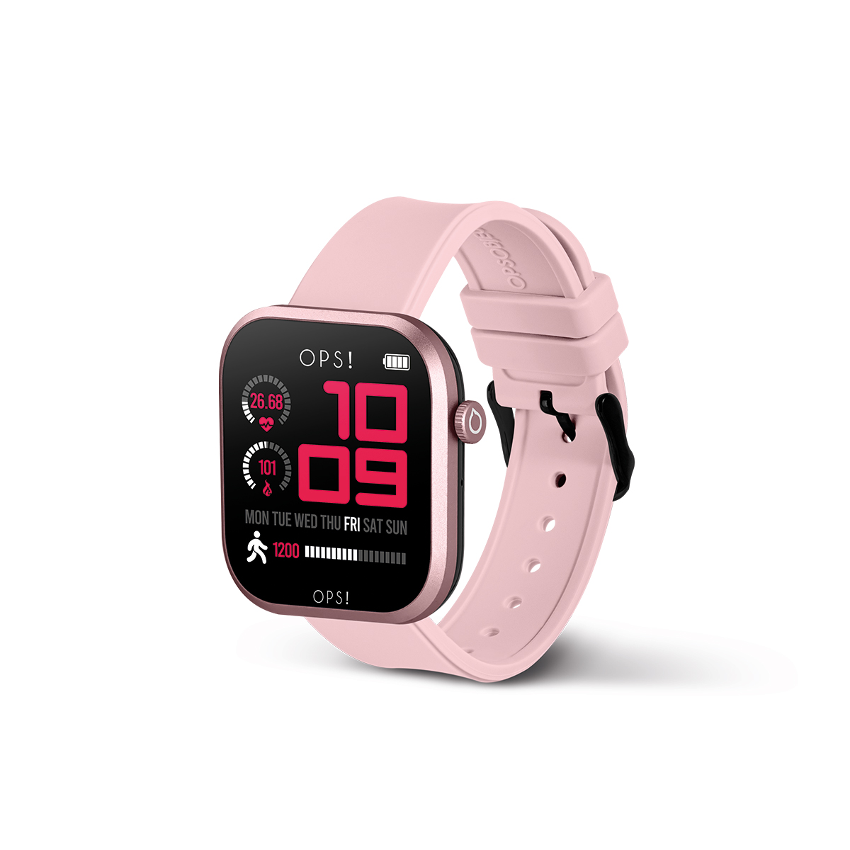 De Ops! Smartwatch Call Pro (modelnummer: OPSSW55) biedt functies zoals datumweergave, verlichting en een digitaal display. De rechthoekige aluminium kast is roze en nikkervrij met kristalglas. De roze siliconen band is 20 mm breed. Draag hem losjes om comfort te garanderen en de functies optimaal te benutten. Ideaal voor dagelijks gebruik met lichte waterbestendigheid.