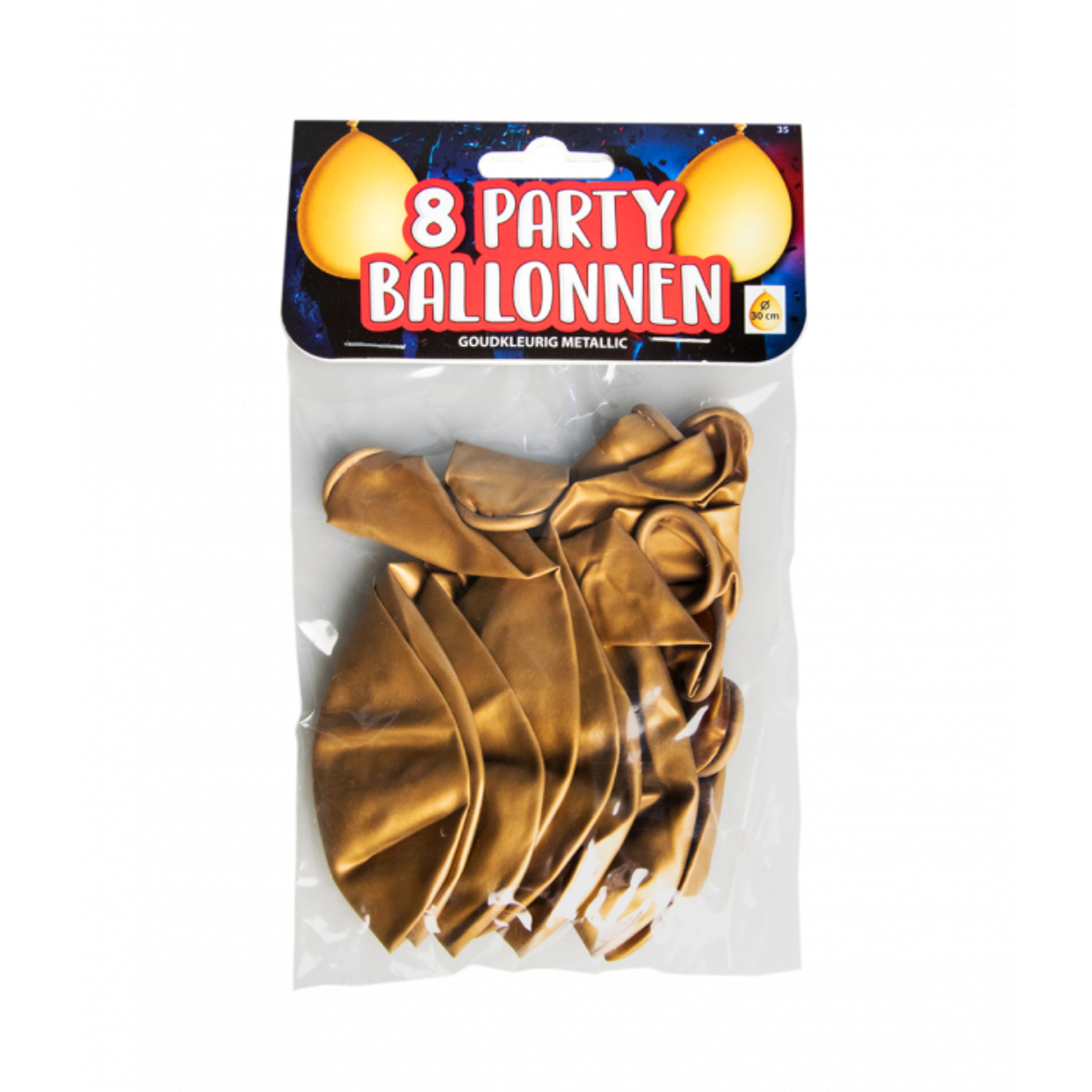 Een feestje kan niet zonder ballonnen en als u party ballonnen Goud metallic koopt dan krijgt u er maar liefst 8 per verpakking! De ballonnen zijn gemaakt van latex en zijn ongeveer 30 bij 30 centimeter groot.